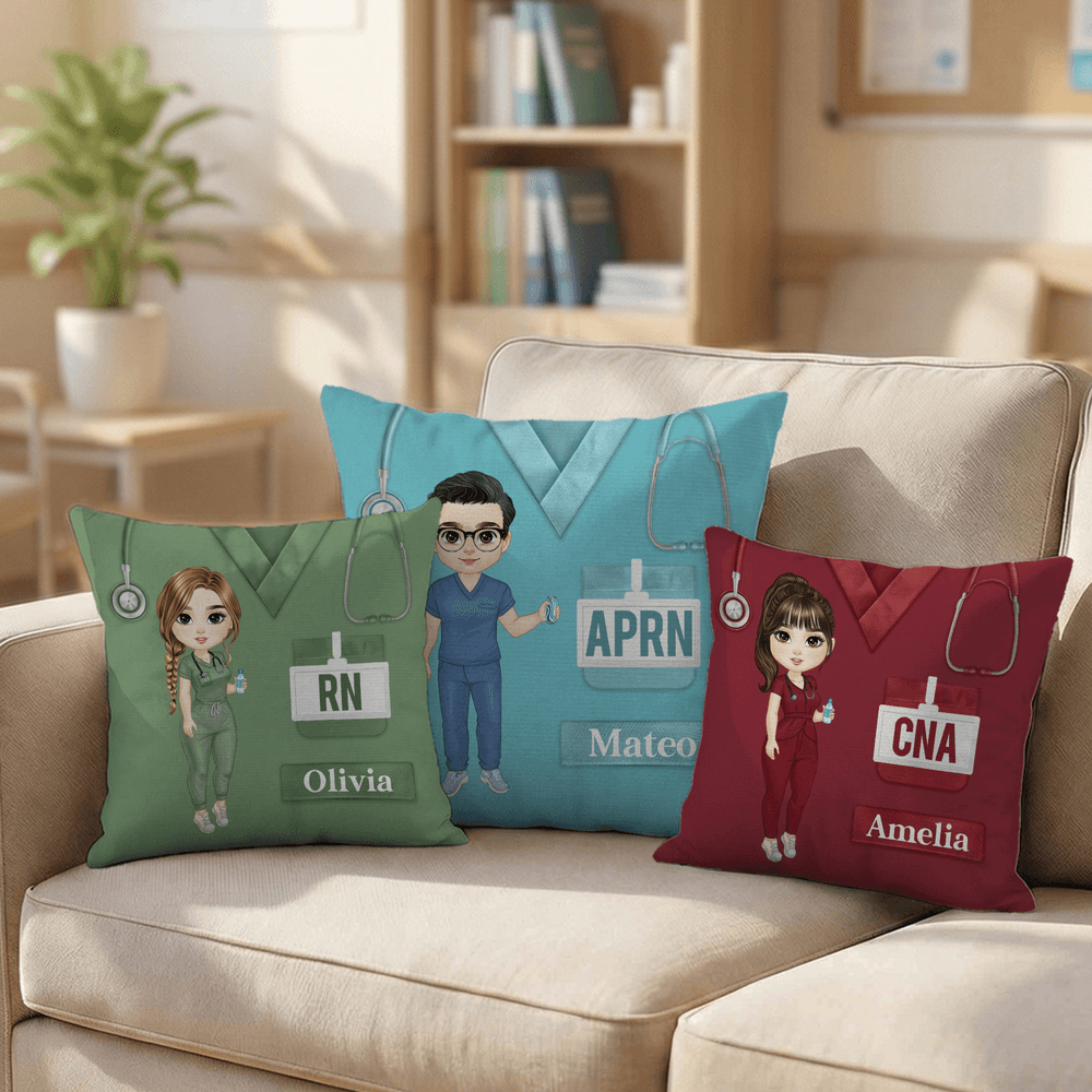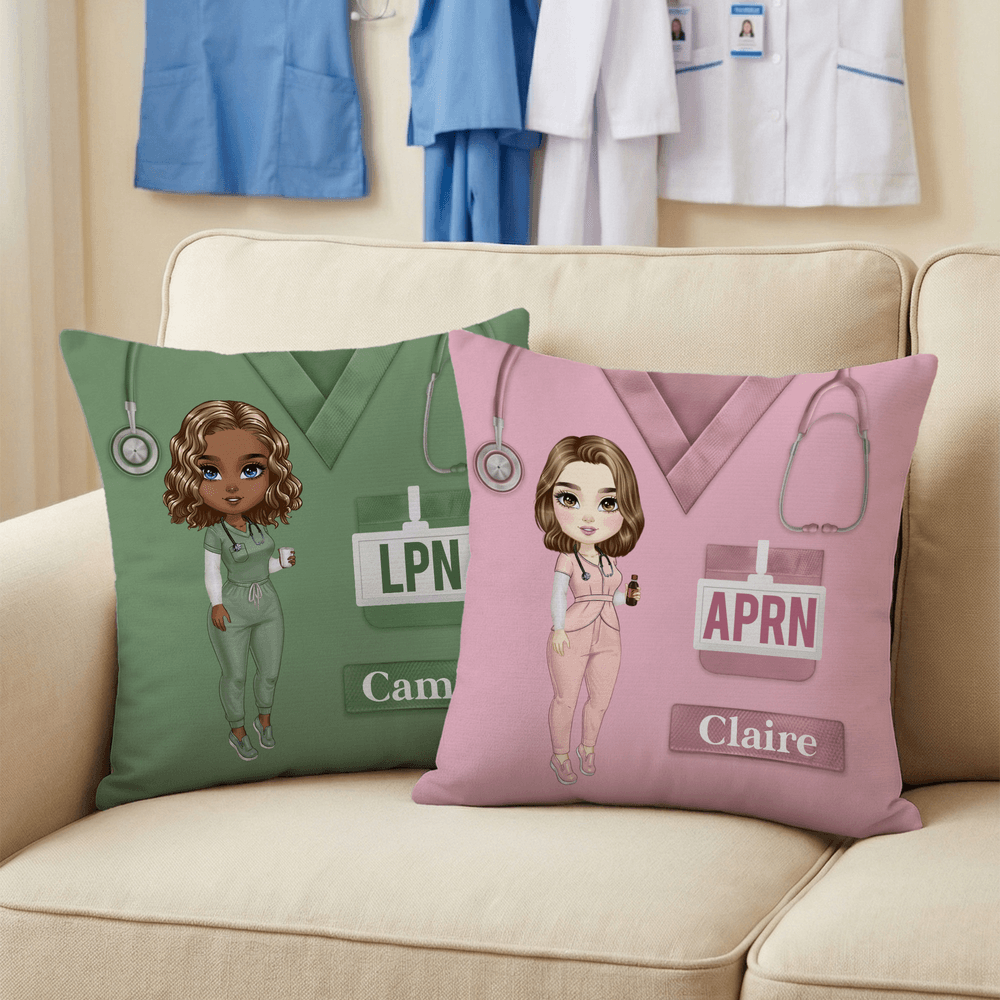 This cartoon medical character pillow cover centers on a warm caregiving theme, blending a cute cartoon nurse with a classic nurse uniform background to give each pillow a unique identity and meaning. Through customizable name and profession fields, the cover gains a personalized label, making the pillow more heartfelt and commemorative.