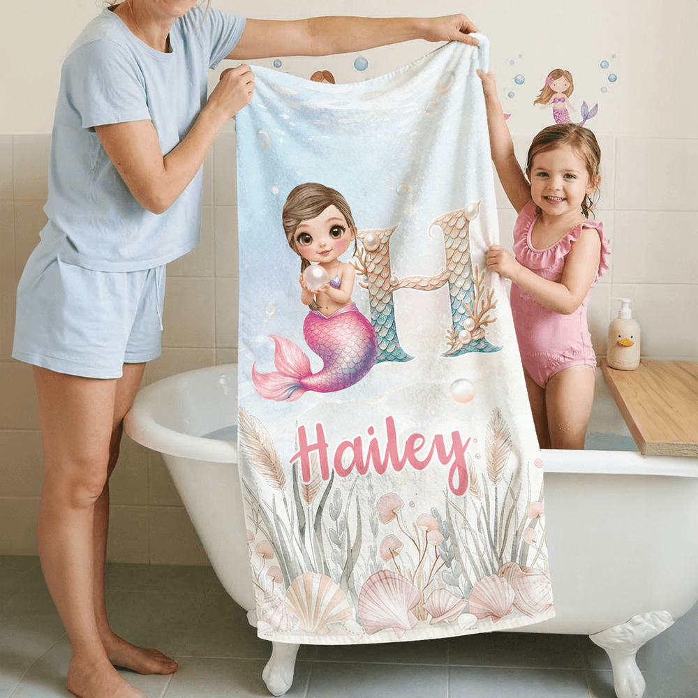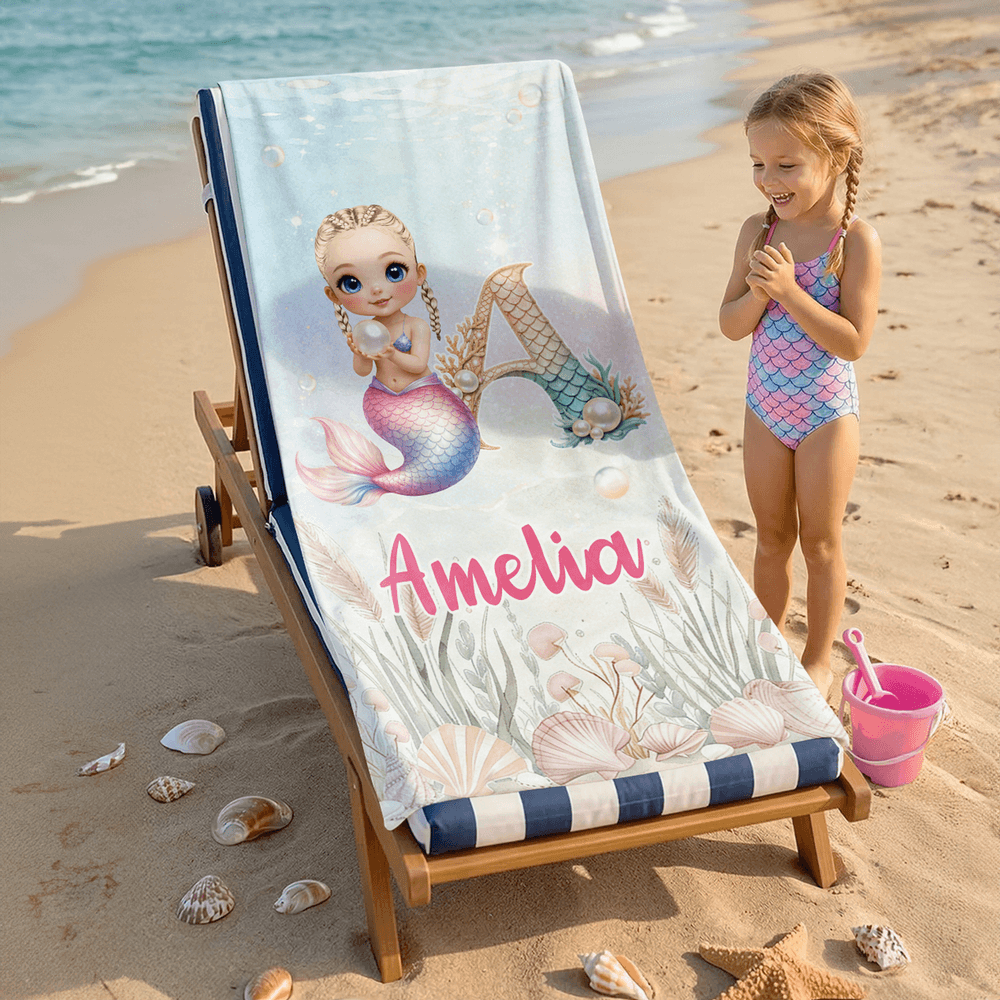 This beach towel is decorated with a lovely cartoon mermaid character, and can be customized with exclusive initials and names. The dreamy ocean theme paired with personalized details creates a one-of-a-kind style, full of fairy-tale charm for mermaid lovers of all ages.