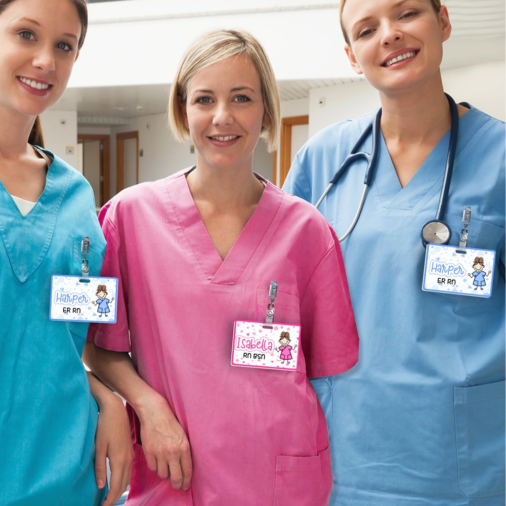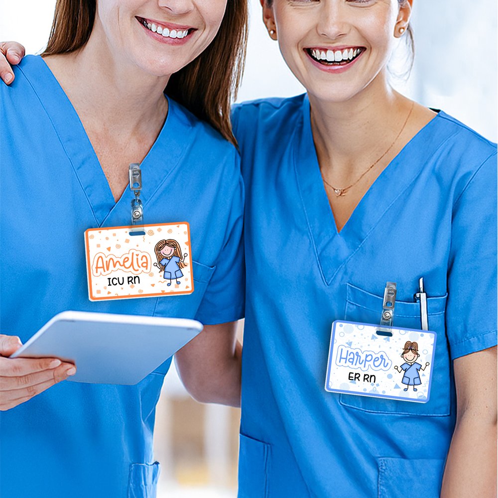 At the heart of this badge buddy is a fresh and adorable stick-figure style cartoon nurse image. It skillfully integrates patterns of medical items such as stethoscopes, syringes, and pills, creating a warm and professional atmosphere. The customizable name and job title are presented in a lively font, instantly transforming a cold work badge into something intimate and warm, perfectly showcasing the unique gentleness and strength of medical staff.