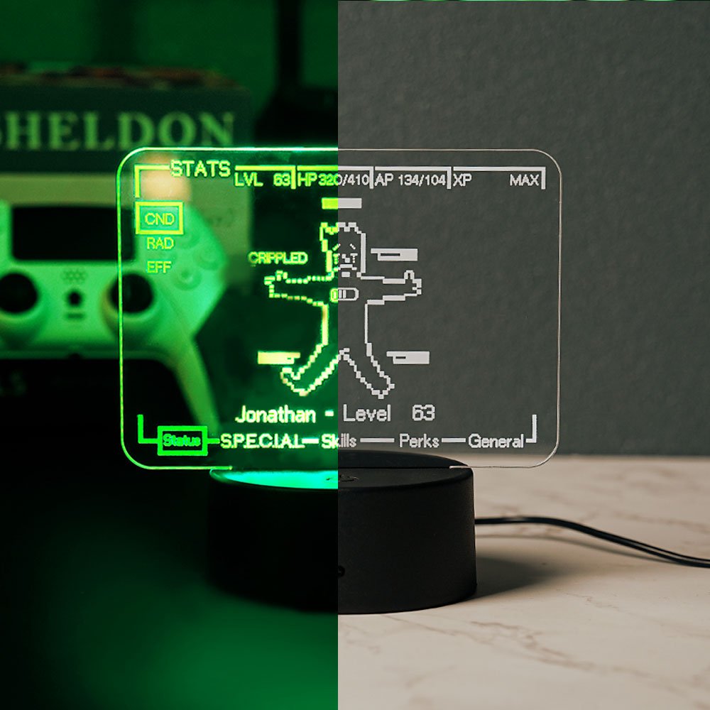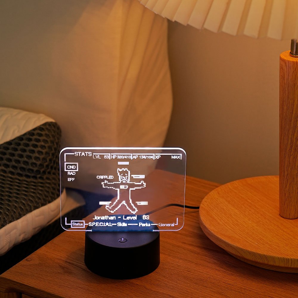 This night light features a creative cartoon pixel man stat screen design, bringing to life the nostalgic charm of retro gaming. With three optional game states—healthy, injured arm, and injured head—it mimics classic RPG health screens and adds a dynamic, interactive element to any gamer’s space.