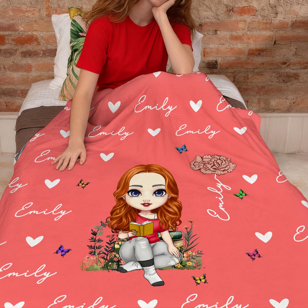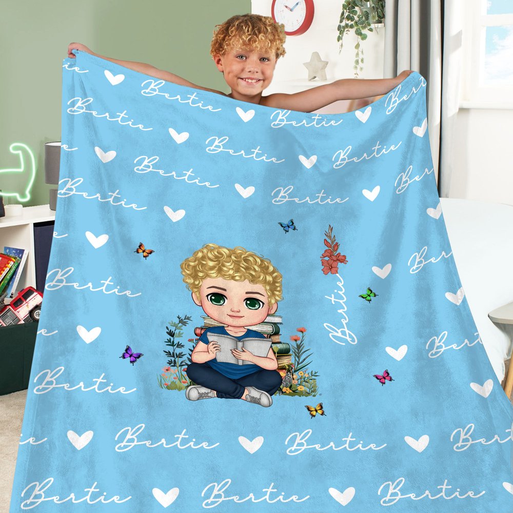 Cleverly blending adorable cartoon characters with birth flowers creates a playful and whimsical aesthetic, showcasing the joy and charm of reading. The name cloud background allows your name to fill the entire blanket, creating a more personalized and exclusive design.