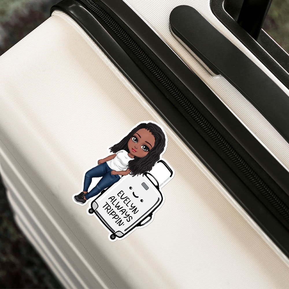 Personalized Cartoon Travel Character Cute Suitcase Waterproof Stickers with Name and Text Travel Accessories Birthday Gift for Woman Travelers