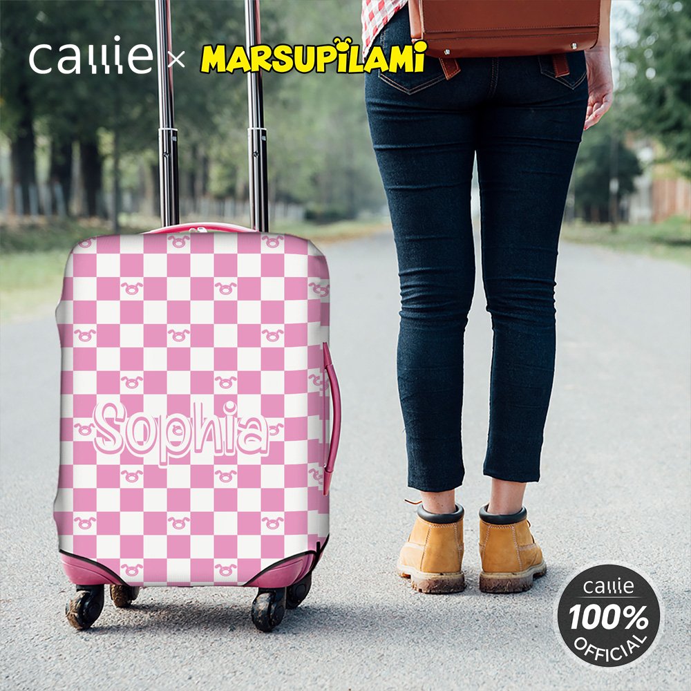 Created by Belgian cartoonist André Franquin in 1952, Marsupilami is a jungle-dwelling creature with yellow fur, black spots, and a super flexible long tail. It’s famous for its iconic "houba!" shout, tail-bouncing moves, and a mix of cheetah agility and monkey cleverness. This luggage cover showcases a trendy checkered pattern paired with the playful cartoon image of Matthew the Longtail Leopard, blending vibrant style with a touch of youthful charm. Personalize it with a custom name, artfully integrated into the design in eye-catching typography, creating a truly distinctive look that stands out wherever you travel.