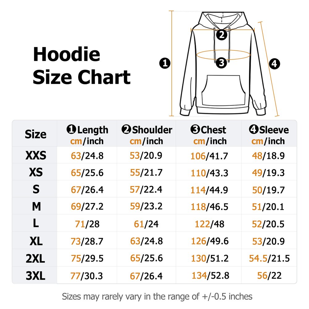 | Measurement: | T-shirt - XXS, XS, S, M, L, XL, 2XL, 3XL, 4XL, 5XL Sweatshirt - XXS, XS, S, M, L, XL, 2XL, 3XL Hoodie - XXS, XS, S, M, L, XL, 2XL, 3XL |