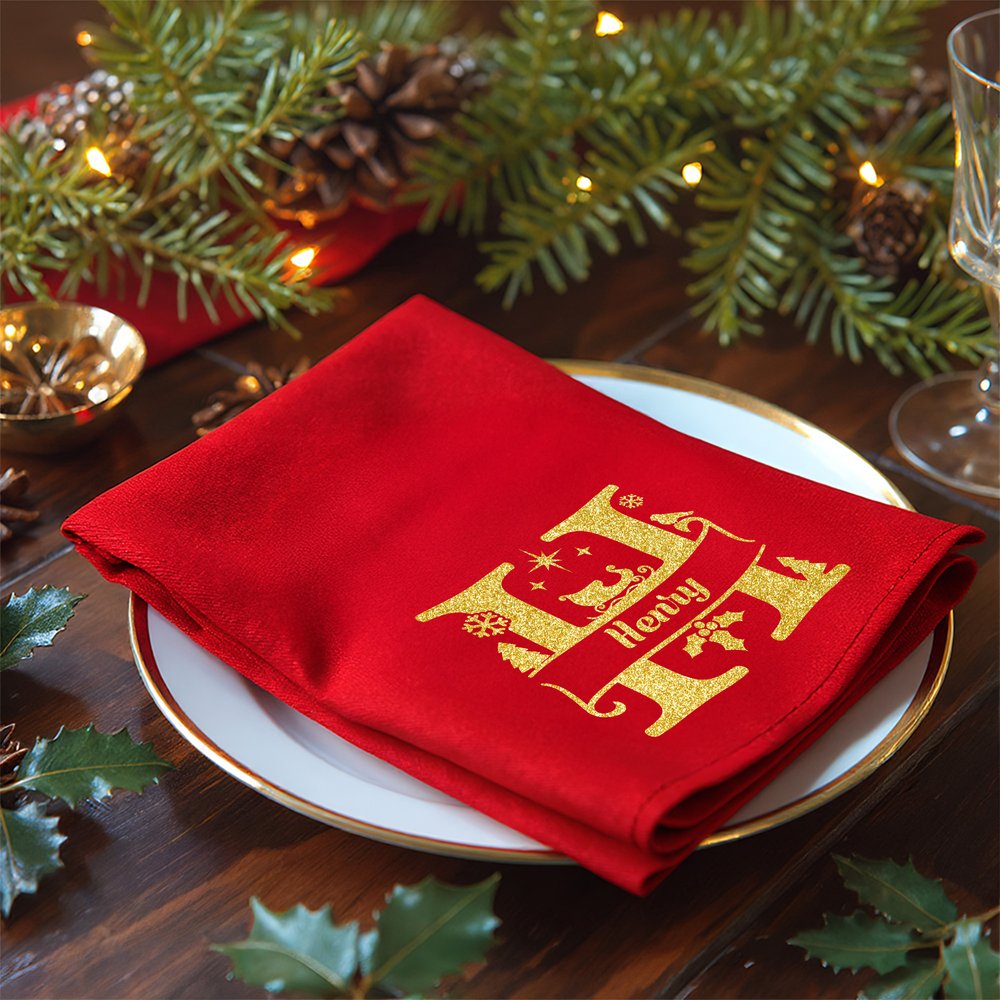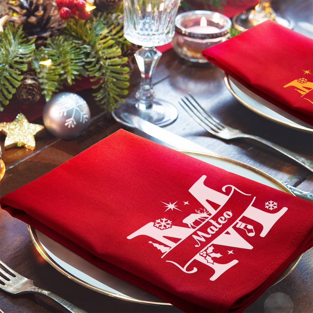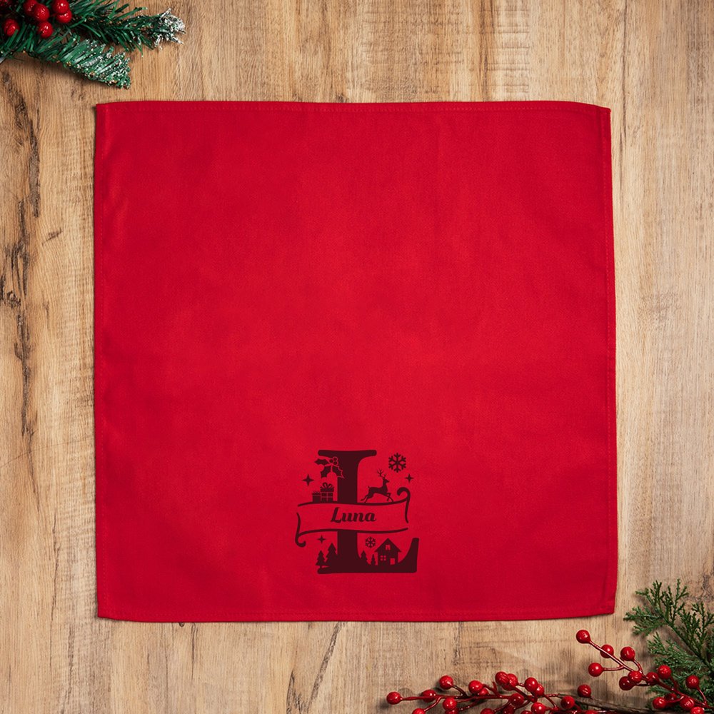 This Christmas napkin features a classic red color and combines exquisite Christmas elements with initials, instantly creating a strong festive atmosphere. It also supports personalization; you can customize it with your initial and name in your preferred color, cleverly blending your personal identity with the Christmas theme, making this napkin stand out from the crowd and become a highlight on the holiday table.