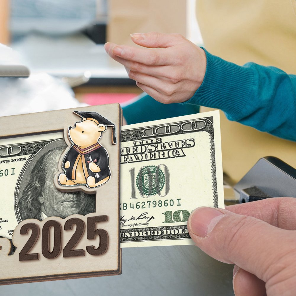 This money holder features a charming classic Winnie the Pooh created by the renowned author A. A. Milne and has captured the hearts of generations, you can personalize it with the graduate's name, to make it a one-of-a-kind graduation keepsake. The color of the name and Bachelor's uniform can be chosen to meet your preference.