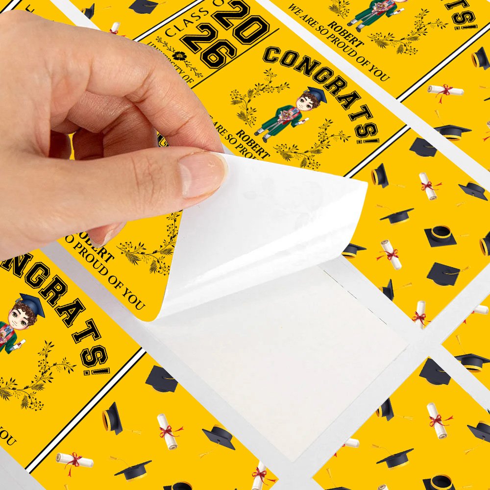 Designed with graduates in mind, these customizable labels are an ideal addition to any graduation celebration. They symbolize the joy and pride of this milestone, all while allowing graduates to showcase their unique journey with personalized details.