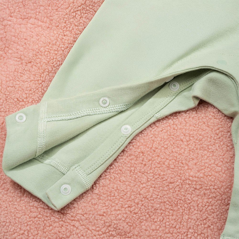 Made from 100% soft, breathable, and durable pure cotton fabric, ensuring unparalleled comfort for your baby. The soft texture not only protects your baby's delicate skin but also gives parents peace of mind during daily care. The slightly elastic fabric accommodates your baby's active nature, enhancing wearing comfort. The snap button design at the bottom is thoughtful and convenient for dressing and undressing, and also for easy washing.