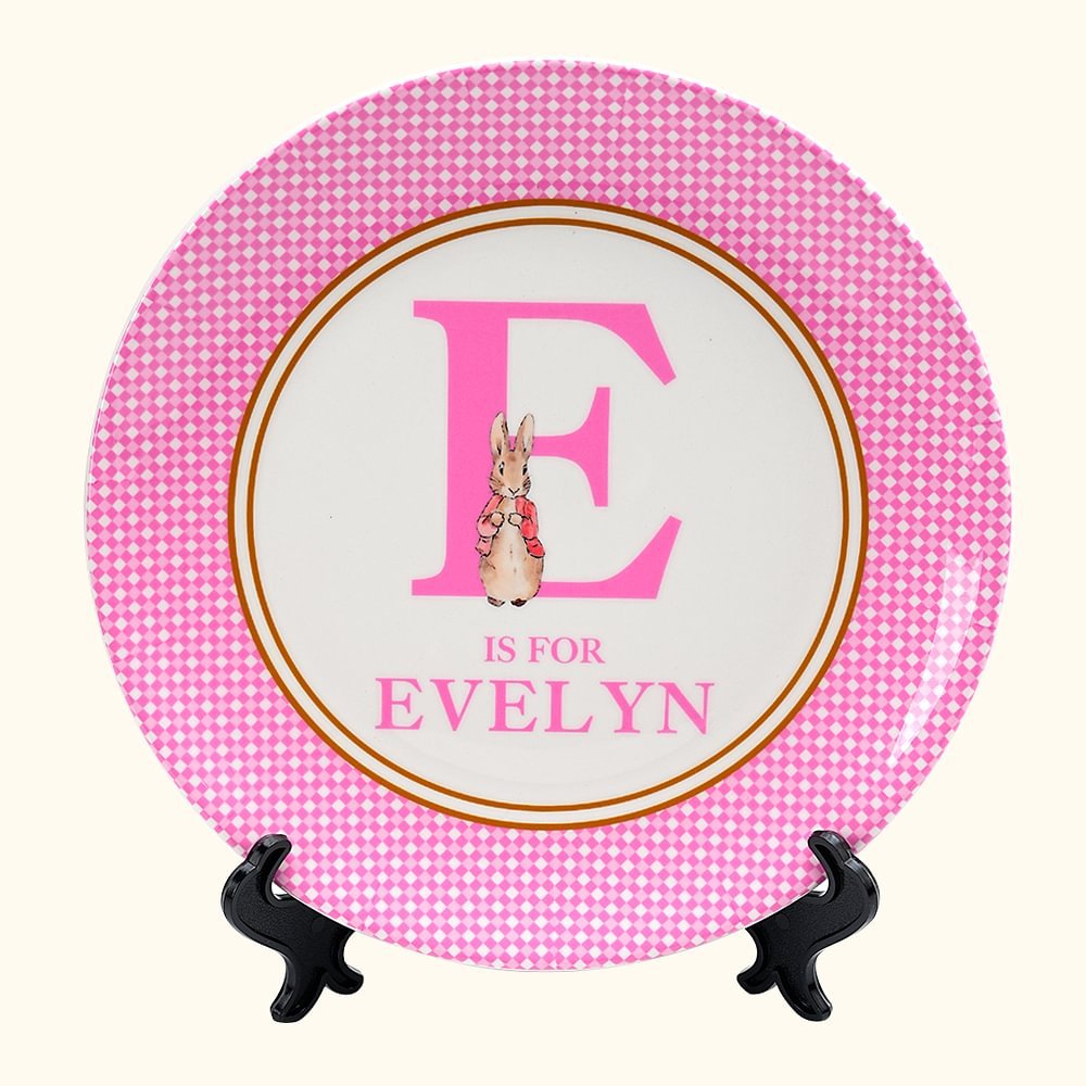 Inspired by the classic fairytale character Peter Rabbit, this product combines cute patterns with modern design. The striped checkered pattern around the plate shows a lively atmosphere. Each plate can be customized with the child's name and initials, which not only reflects personality but also adds a unique charm to family gatherings.