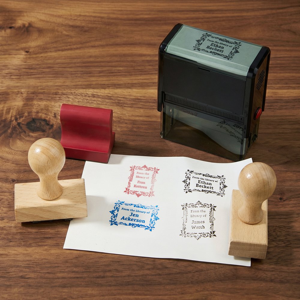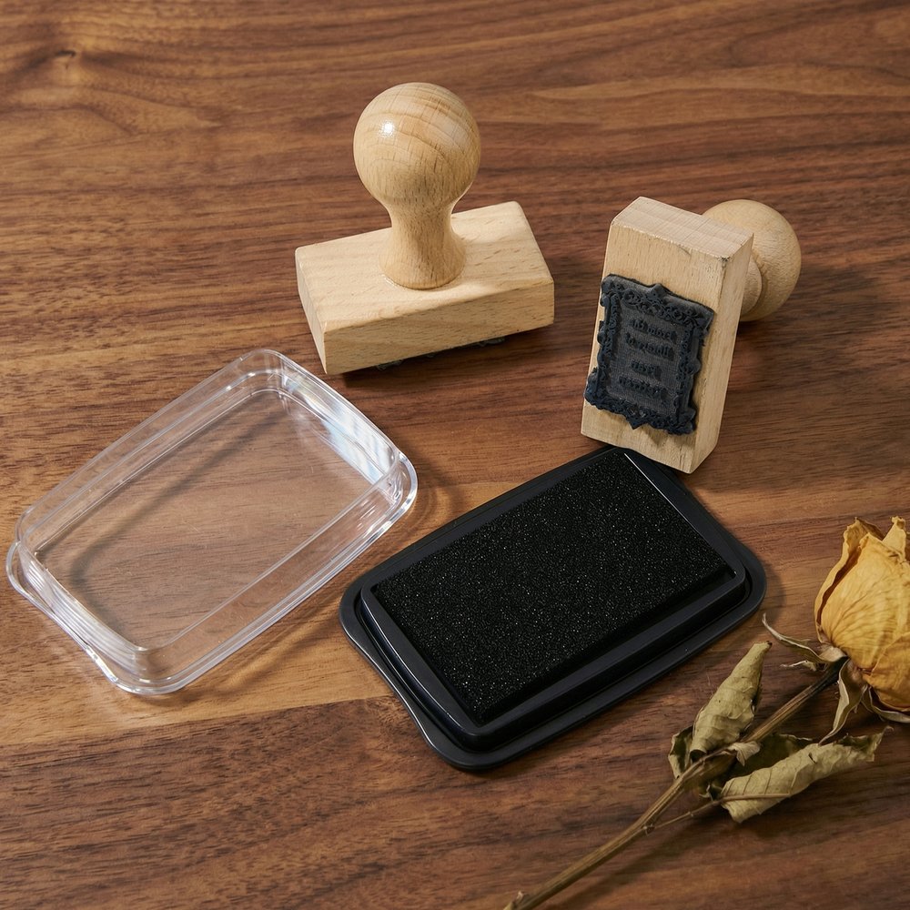 Four stamp designs are available, each crafted from different materials: the wooden handle is comfortable, ergonomic, and has a warm, natural feel. The self-inking version comes with its own ink, ensuring a clear and consistent print with every press, eliminating the need for an inkpad. The engraved design is precisely cut from high-quality rubber, maintaining sharp, clear, and smudge-proof text and detail even after hundreds of uses.