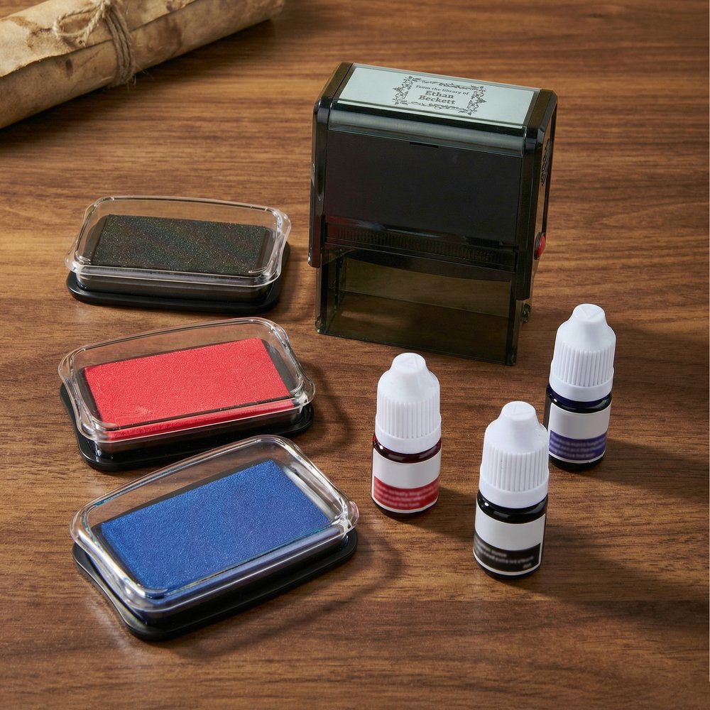 Replaces easily detached, torn, or damaged adhesive labels. A simple press leaves a clear, professional mark on the inner cover, title page, and even the edges of pages. Besides marking ownership, this stamp can be used on library cards, bookplates, or imprinted on small pieces of paper as unique bookmarks. It can also be used on letters, diaries, or notebooks, extending its use far beyond the bookshelf.