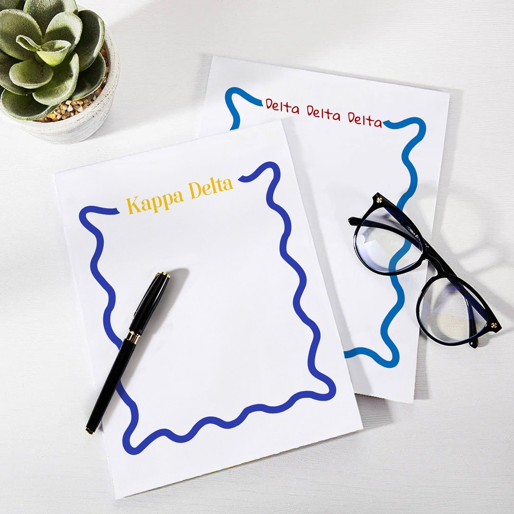 This notepad features a stylish and meaningful design perfect for sorority members. Customization options allow you to add the name of your sorority, such as Alpha Kappa Alpha or Sigma Delta Tau, prominently displayed on the cover. This design not only reflects the identity and spirit of the sorority but also helps members feel a sense of belonging and pride.