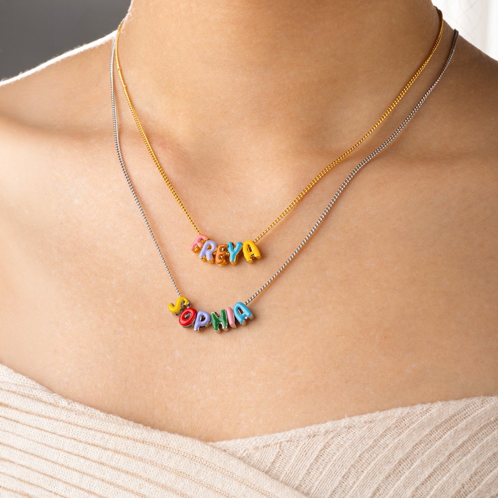 This necklace features enamel bubble letters as its core element. The letters are rounded and full, and come in customizable colors, breaking the monotony of traditional letter necklaces with a lively yet refined style. Customizable with your own name, this ordinary accessory becomes a uniquely personal symbol. It can be worn daily as a decorative accessory, adding a personal touch and easily showcasing individuality and style, complementing a variety of fashion styles.