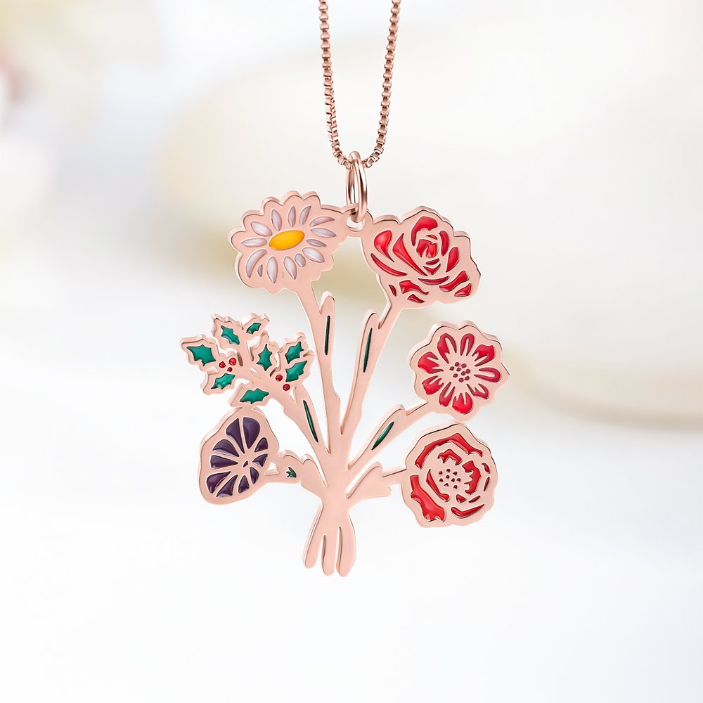 This necklace is exquisite and beautiful, inspired by unique colorful birth flowers, you can choose the birth flower it represents according to each person's different birthdays, and combine them into a bouquet to show the inseparable love between mothers and their children, celebrating the great love of motherhood.
