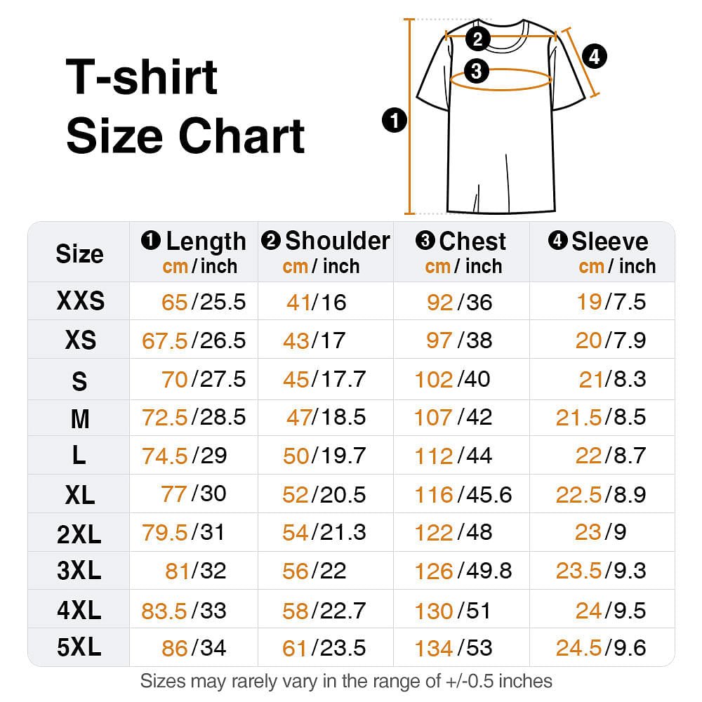 | Measurement: | T-shirt - XXS, XS, S, M, L, XL, 2XL, 3XL, 4XL, 5XL |