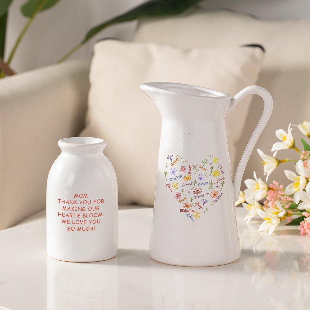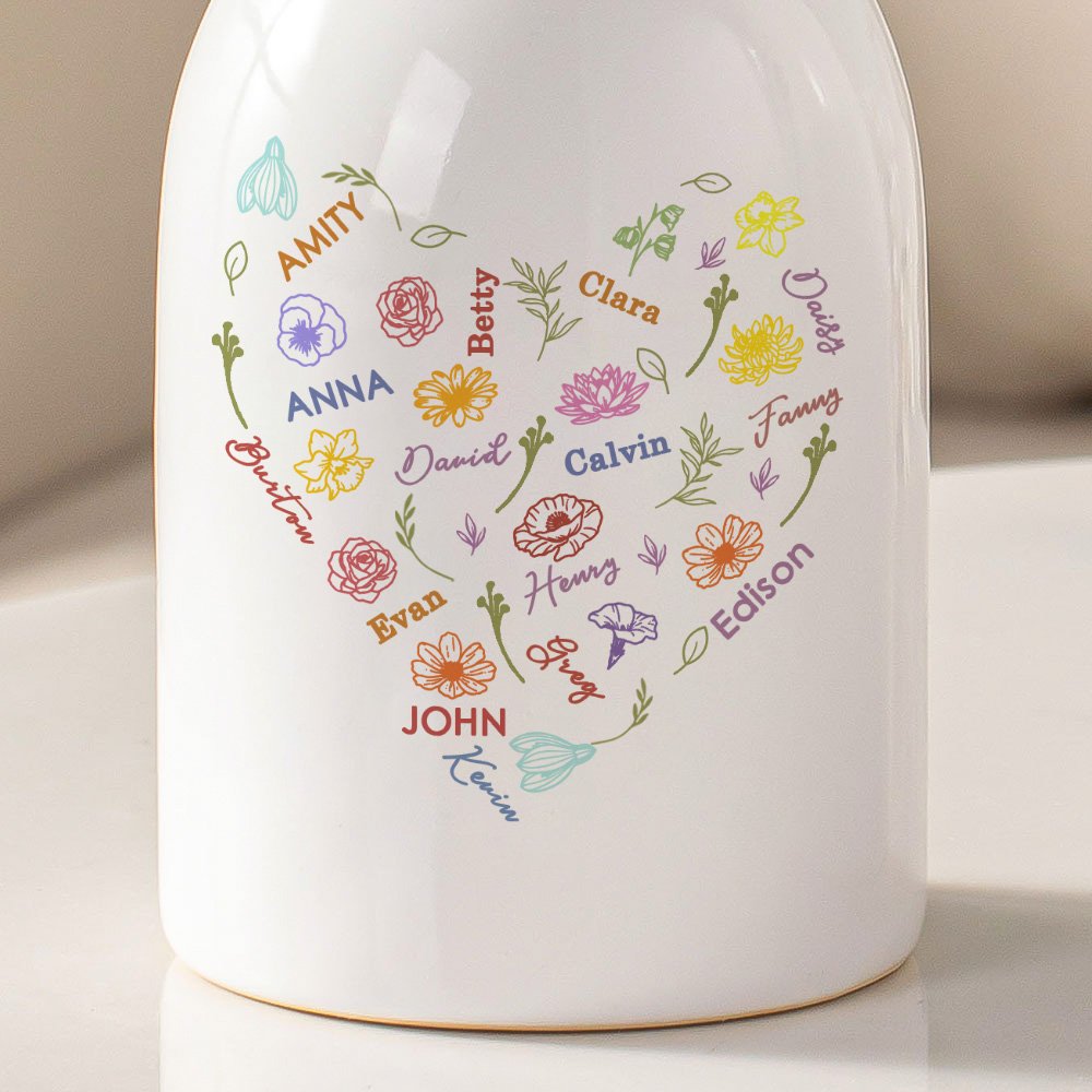 Designed with a vibrant heart-shaped word cloud as the main design, this vase comes with birthday flowers in various colors and personalized names from 1 to 15 years old to evoke happiness and warmth. You can add a thoughtful message in the back vase to create a one-of-a-kind keepsake.