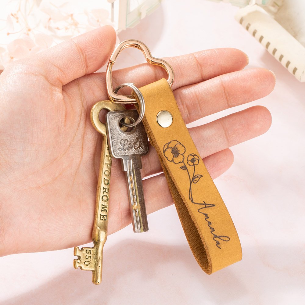 Our birth flower leather keychain is a distinctive and meaningful accessory that celebrates the beauty of your birth month. It carries your birth flower and name, allowing you to take your birth story with you wherever you go.