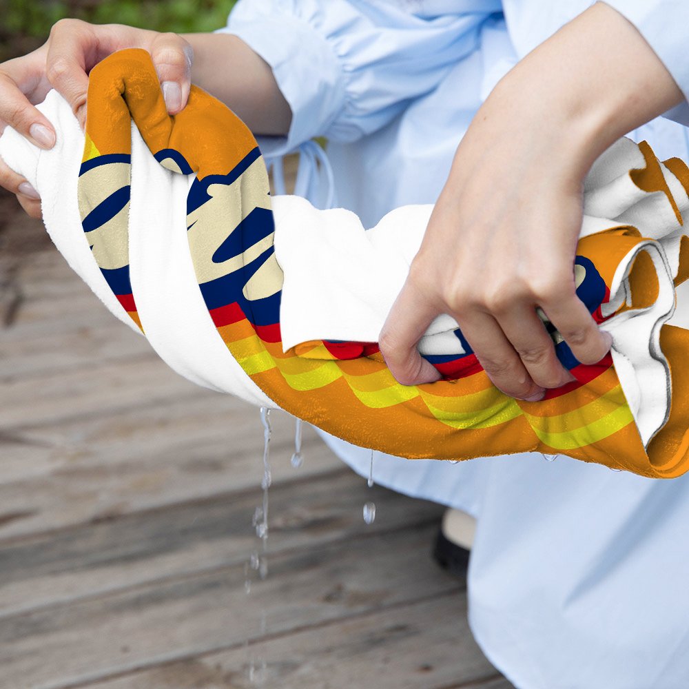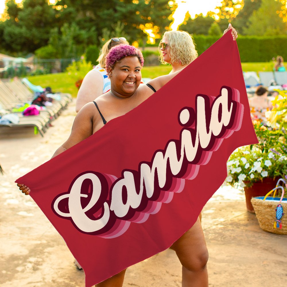 The name on the beach towel is superimposed in multiple colors, which are eye-catching and vibrant. This design is not only beautiful, but also makes the beach towel easier to identify on the beach. With up to 24 colors to choose from, you can also customize your name, which not only shows your personality, but also adds a sense of exclusivity.