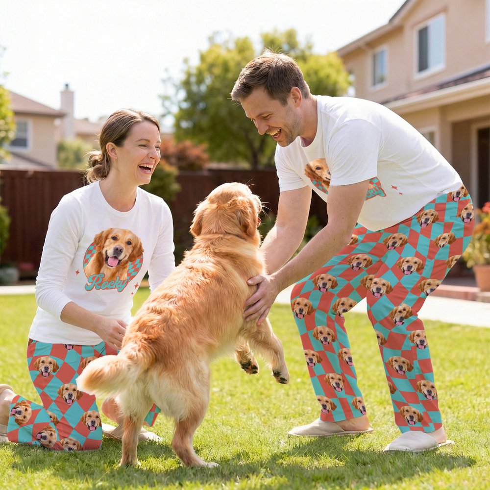 This pajama set allows for customization with adorable face photos of your pet, paired with a colorful plaid pattern and a personalized name, exuding a sense of comfort and exclusivity. Six styles can freely be chosen to perfectly blend the face photos, name, and plaid elements, with every detail holding a unique memory and love.