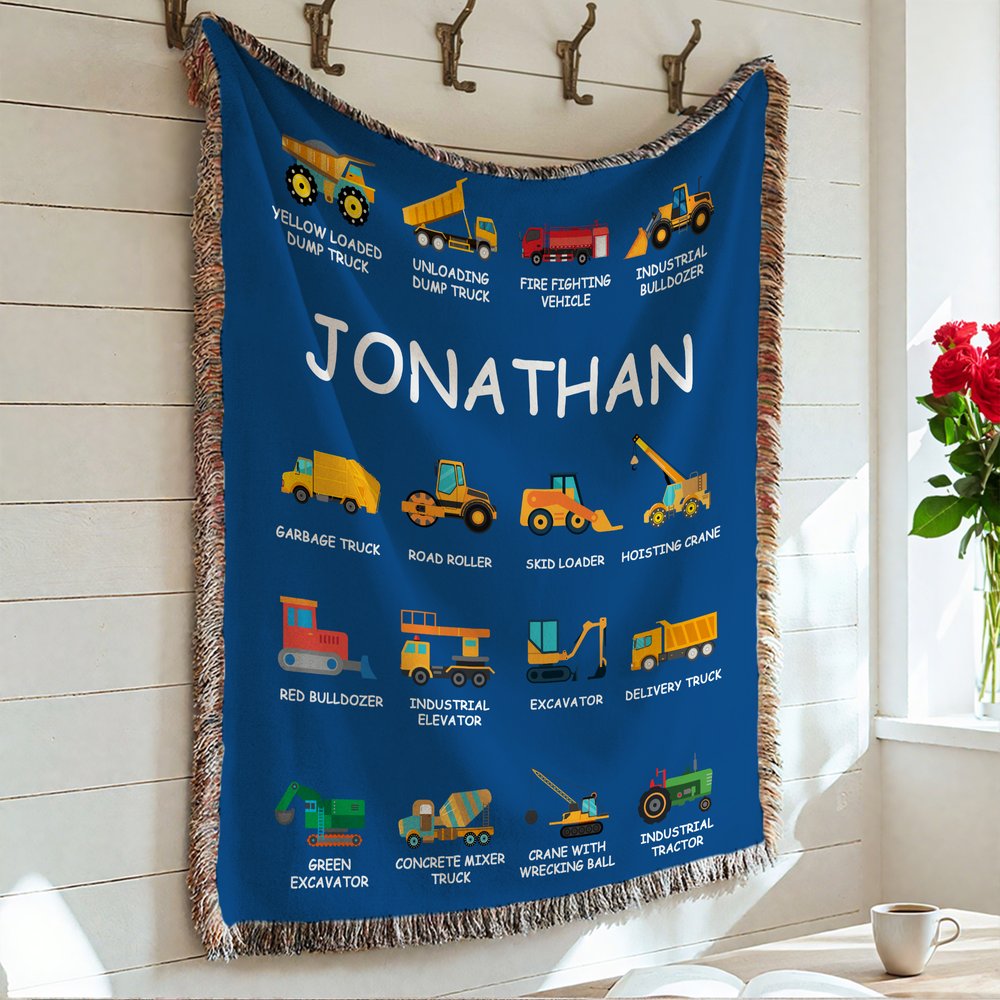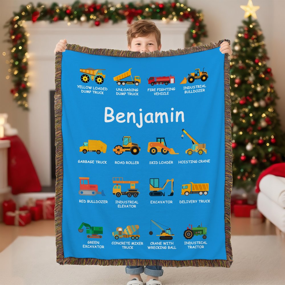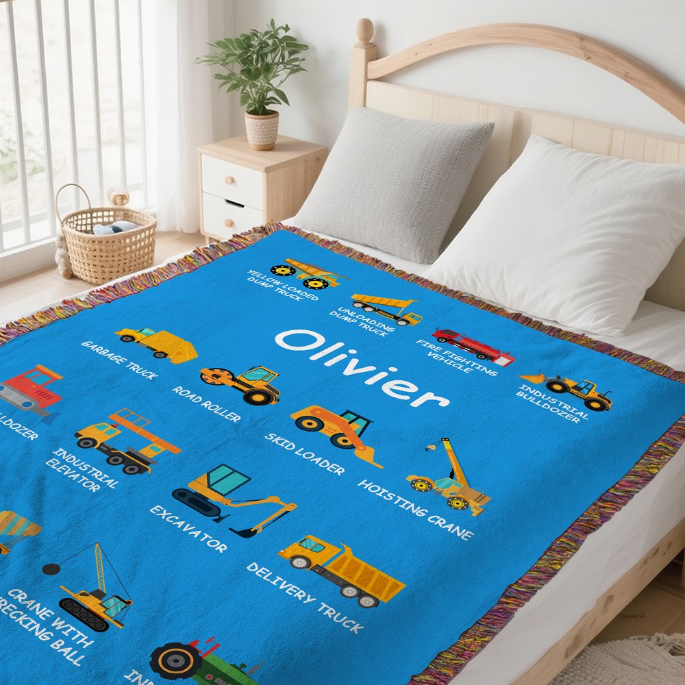 This soft blanket is inspired by construction vehicles, featuring a lively and powerful design. The bright colors instantly capture children’s attention. There are two styles to choose from: a regular blanket without tassels, and one with tassels on all four sides, adding extra movement as the blanket sways. You can customize your child’s name in the center of the blanket and choose their favorite color combination, creating a truly unique piece of art.