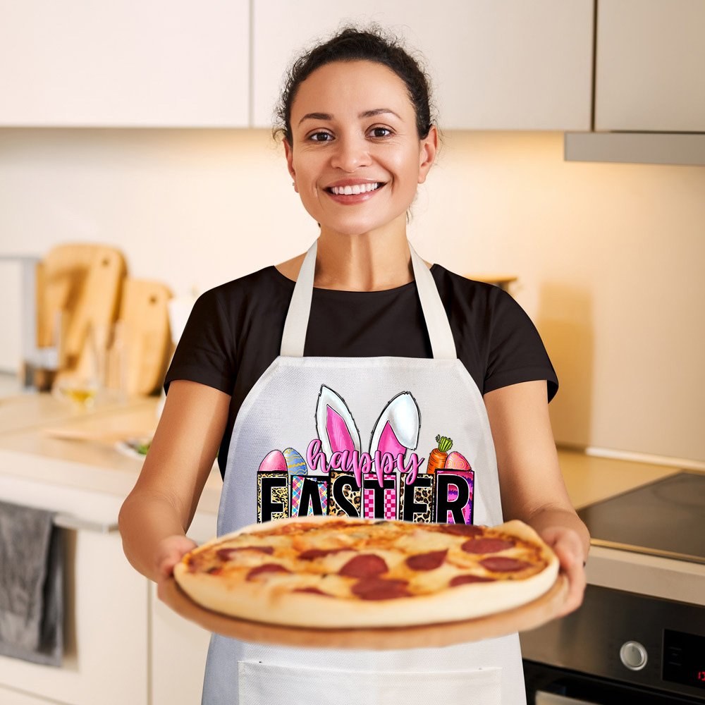Made from polyester imitation linen fabrics, the apron is both durable and comfortable, ensuring years of use. The pockets on the apron are perfect for storing small items like utensils, recipe cards, or small baking tools., making it convenient for you to prepare Easter dinner.
