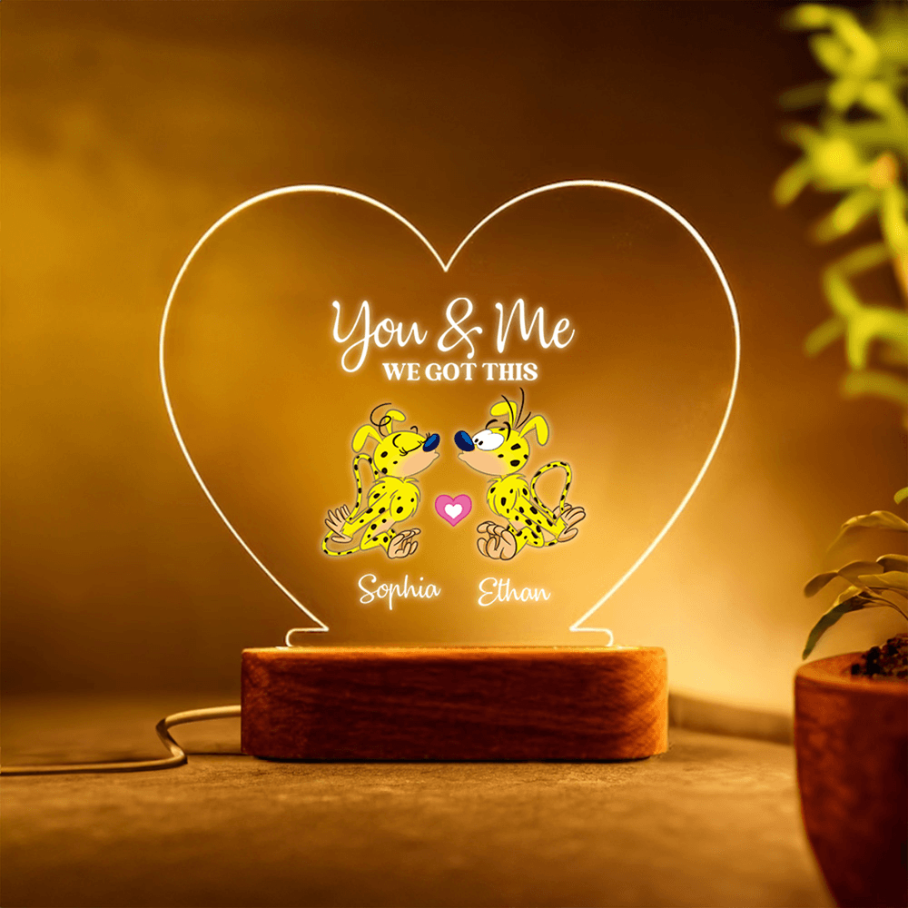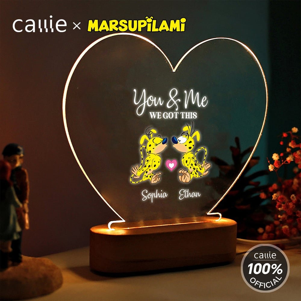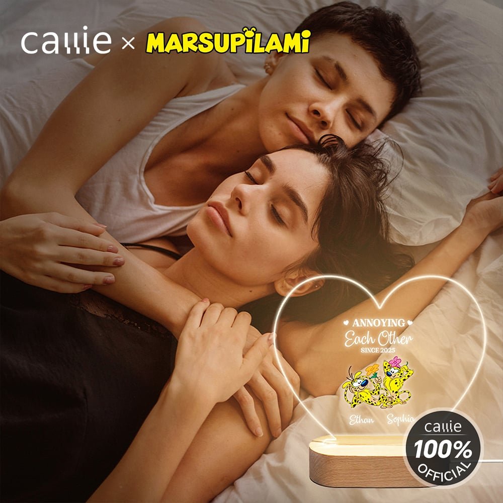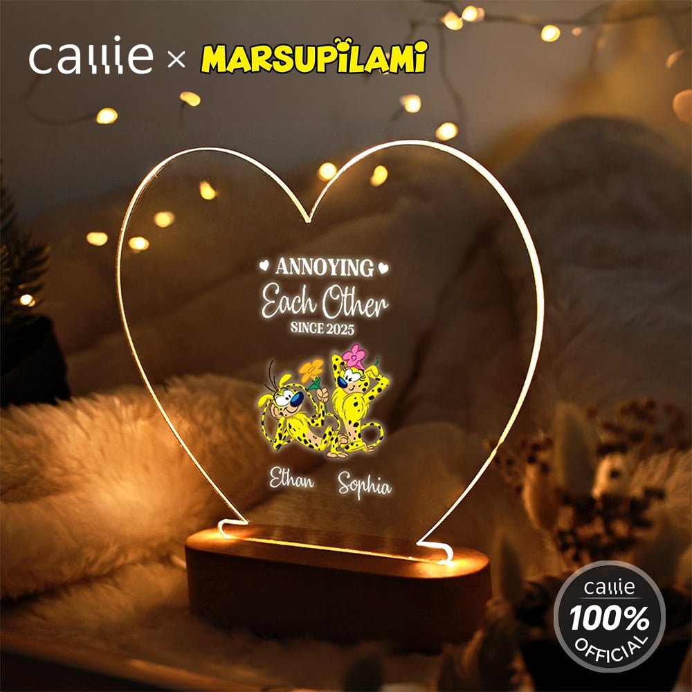 Created by Belgian cartoonist André Franquin in 1952, Marsupilami is a jungle-dwelling creature with yellow fur, black spots, and a super flexible, long tail. This night light lets you craft a one-of-a-kind piece for Marsupilami fans or couples: choose from 5 whimsical Marsupilami cartoon patterns and add custom names to make it uniquely yours.
