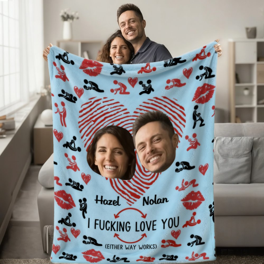 This blanket features a design centered around a couple of photos, incorporating romantic elements such as hearts, fingerprints, and kisses to further enhance the sweet atmosphere. It supports customization with two photos and names on the left and right, and a romantic text below, weaving love and exclusive memories into the design. It not only highlights the unique connection between couples but also makes warmth and love visible.
