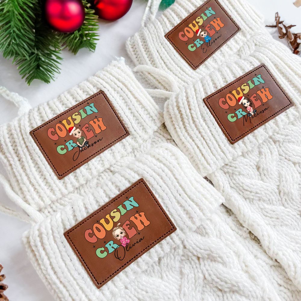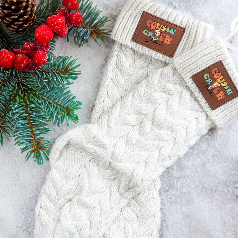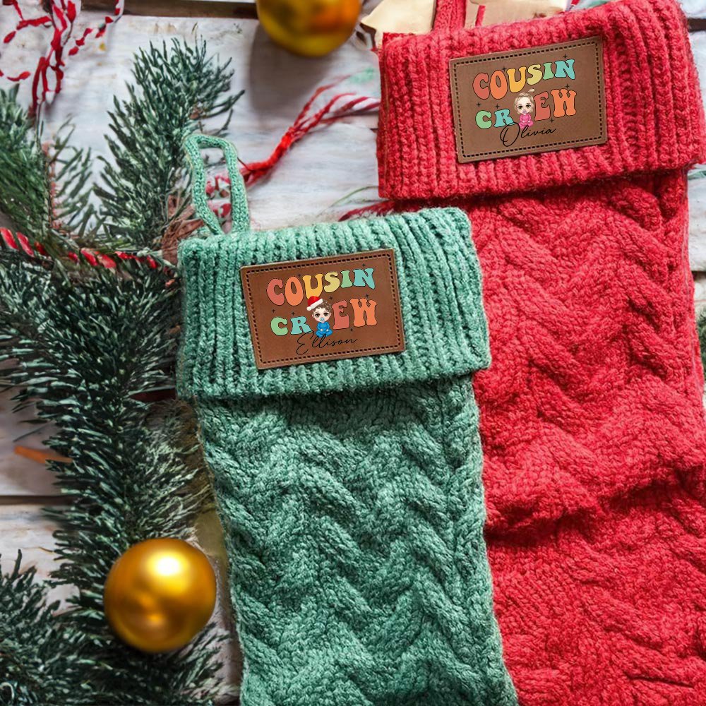 This Christmas stocking is designed with the colorful "Cousin Crew" as the slogan, classic rainbow color matching plus cute fonts, with customized cartoon children's images, unique, fashionable, and eye-catching. You can also customize your name on it to create a unique Christmas decoration.