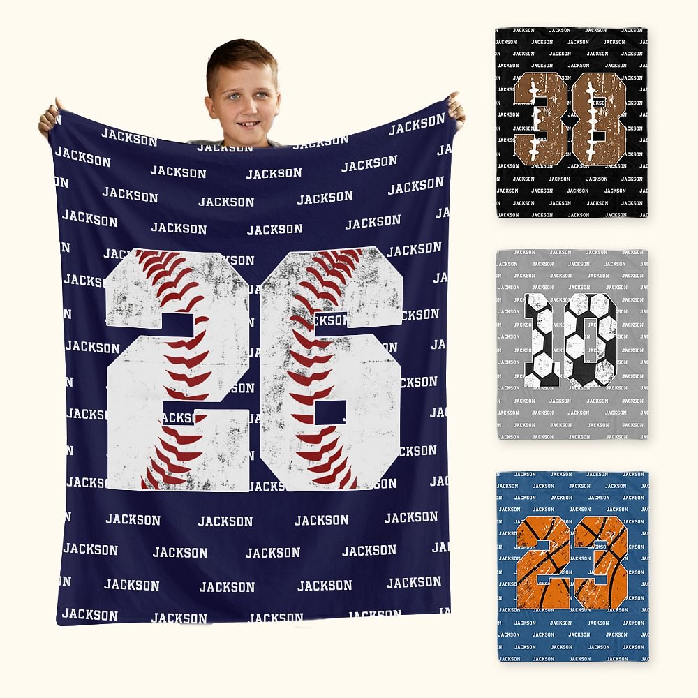 Our personalized ball number blanket is a must-have for any sports fan. With the option to choose from four ball designs (baseball, basketball, soccer, football) and personalize it with your name, this blanket offers uniqueness and personality.