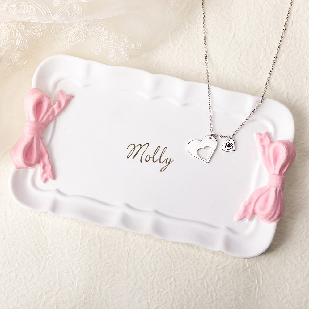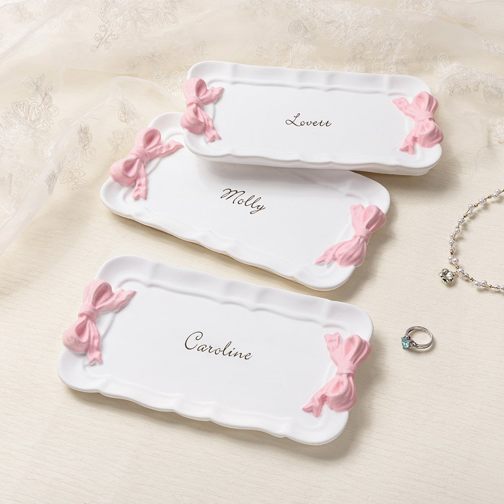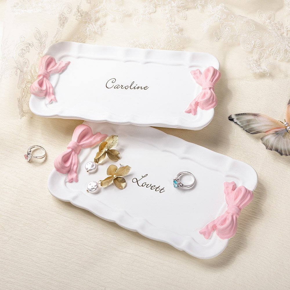 This jewelry dish is inspired by the gentle and dreamy cream texture, with three-dimensional bow elements, creating a sweet and high-end visual effect. Supports personalized name customization, making each tray unique, not only a decoration, but also an exclusive expression of the heart.