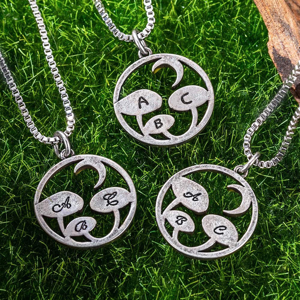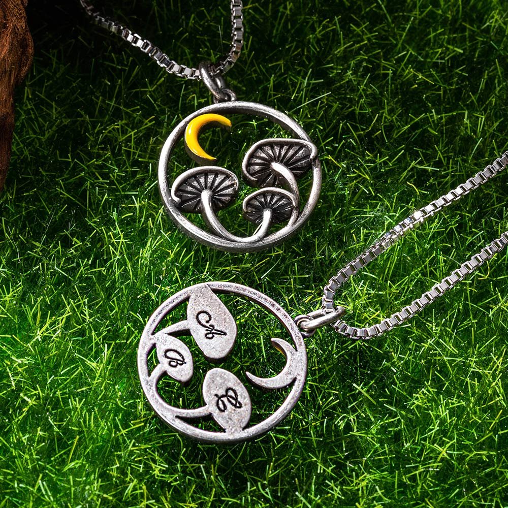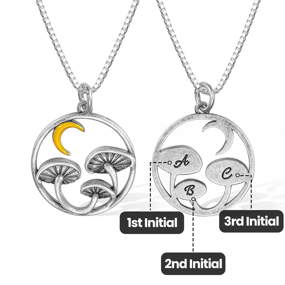 Personalized Crescent Moon Mushroom Necklace with Initials