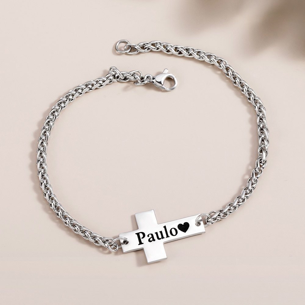 This bracelet adopts the design concept of interweaving classics and faith, combining simple style with religious symbolism. The centerpiece is an exquisite cross pendant, symbolizing firm faith and inner strength. The pendant can be customized with words to record names, prayers, or Bible chapters, bringing spiritual comfort and stability to the wearer.