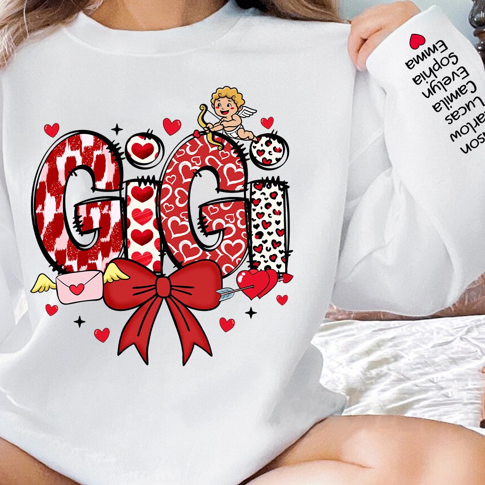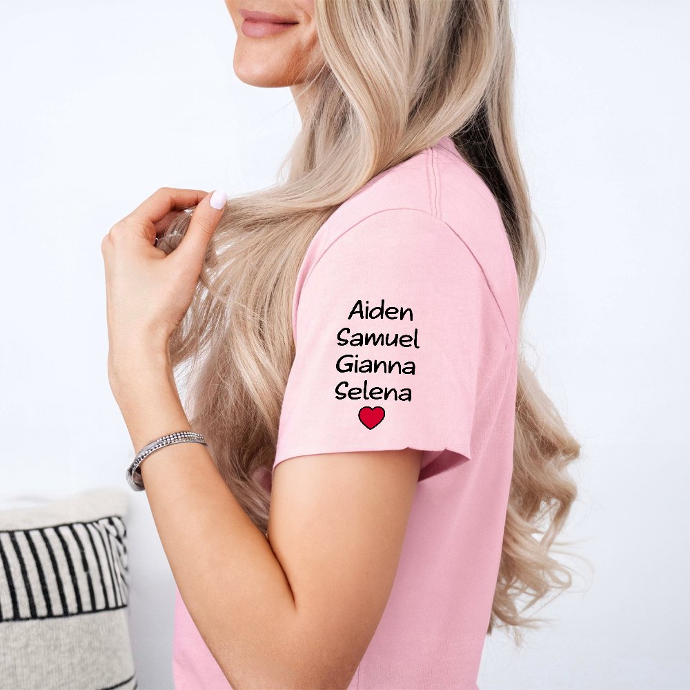 Choose a short sleeve or sweatshirt and customize the title so you can personalize your gift perfectly. The t-shirt allows customization with 1-7 child names on the left sleeves, while the sweatshirt accommodates up to 16 child names, making it an ideal choice for larger families or cherished groups.