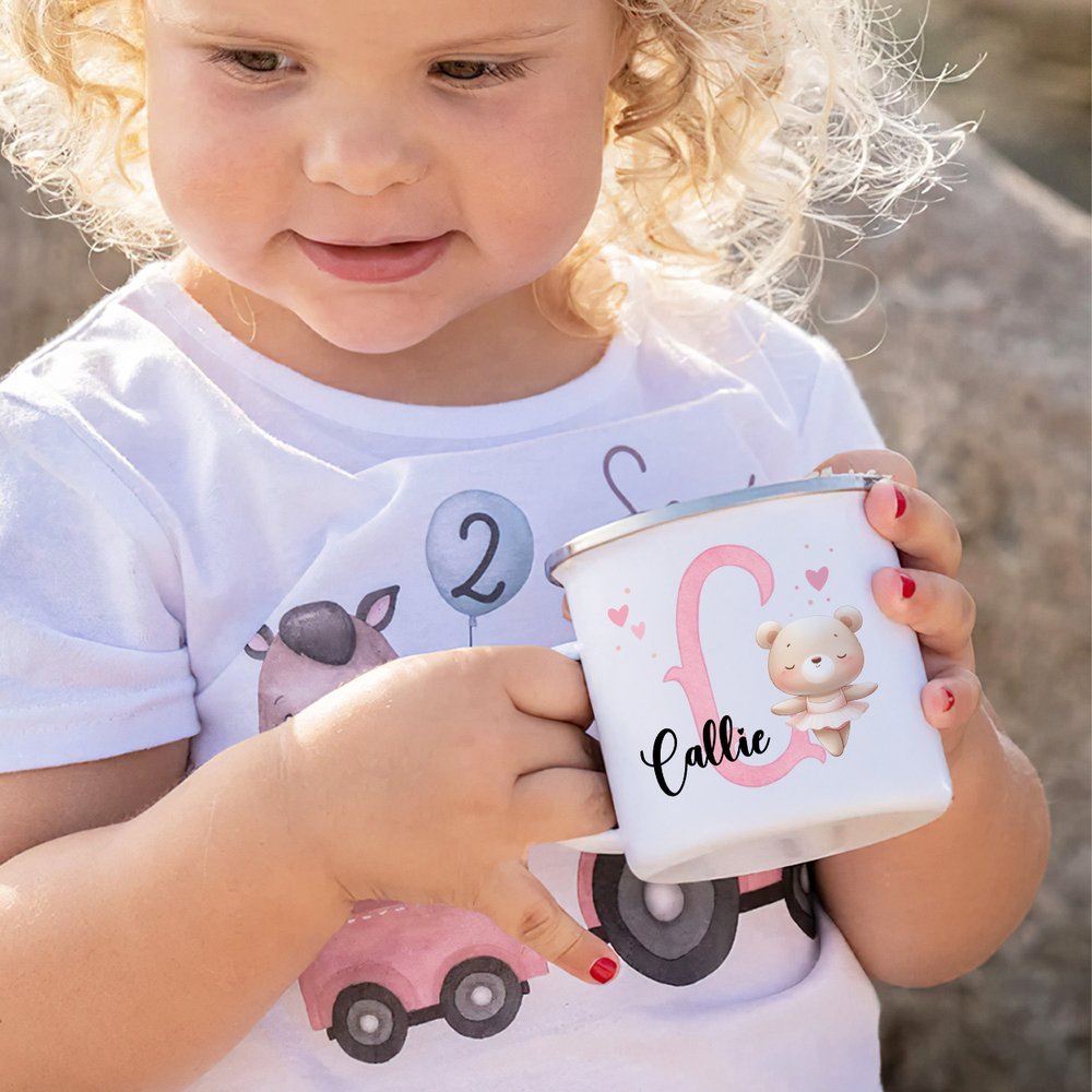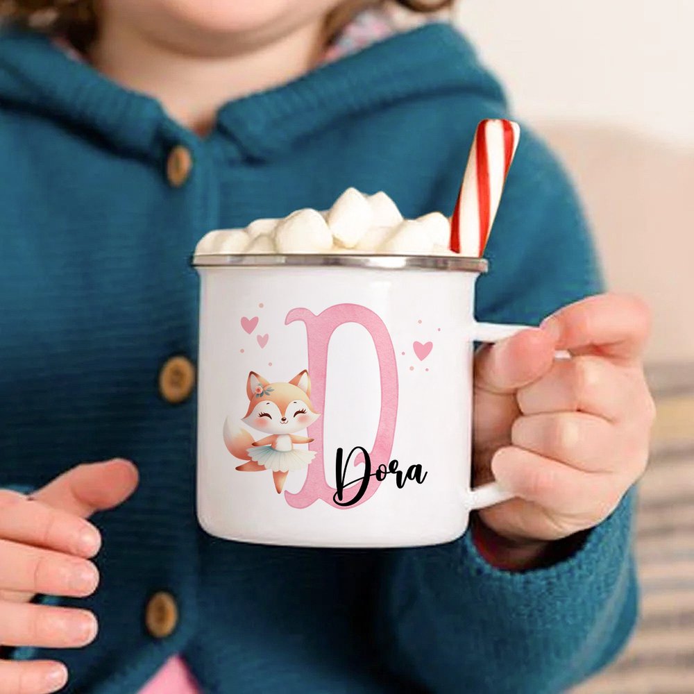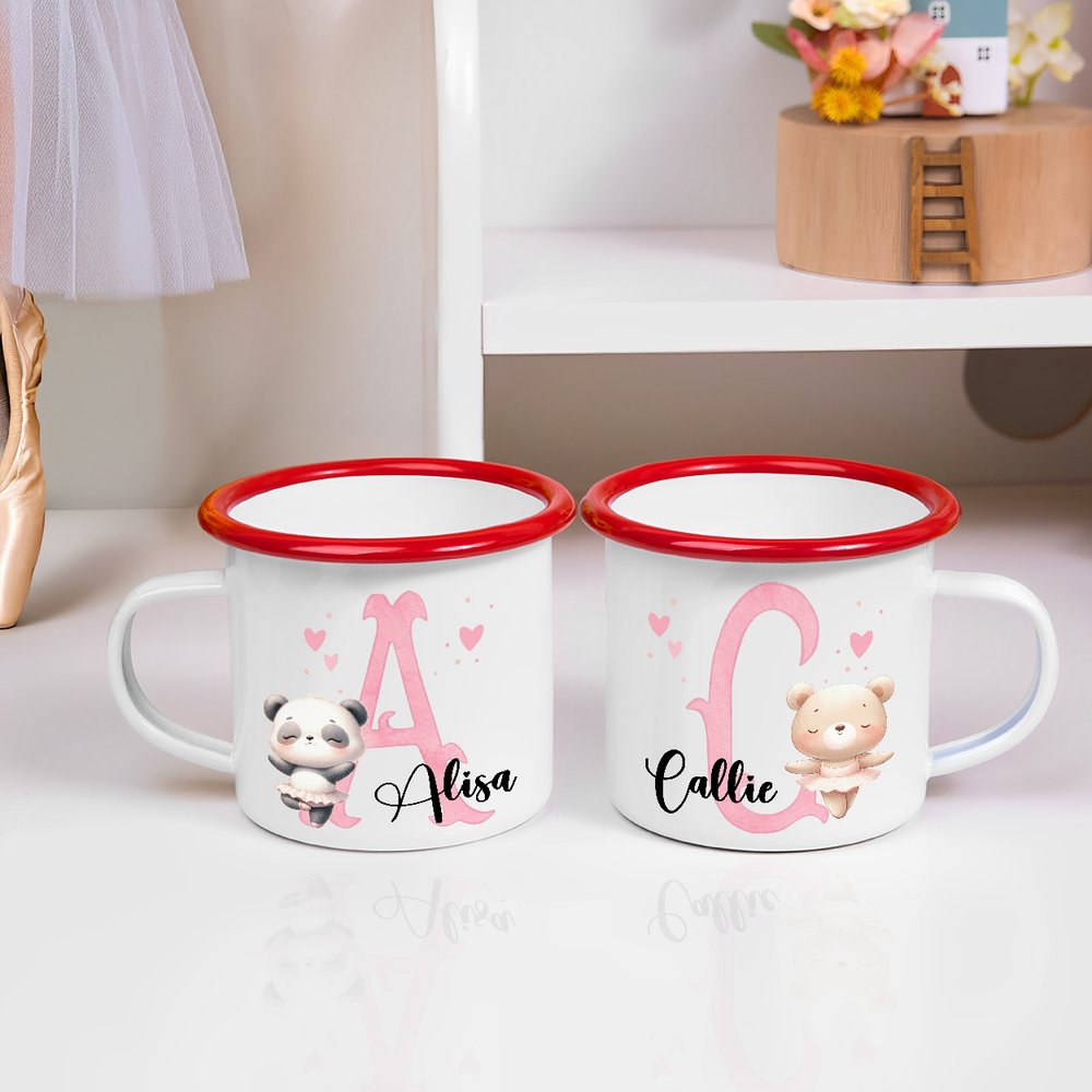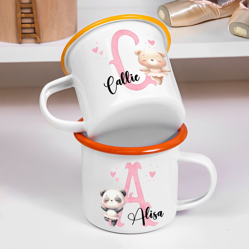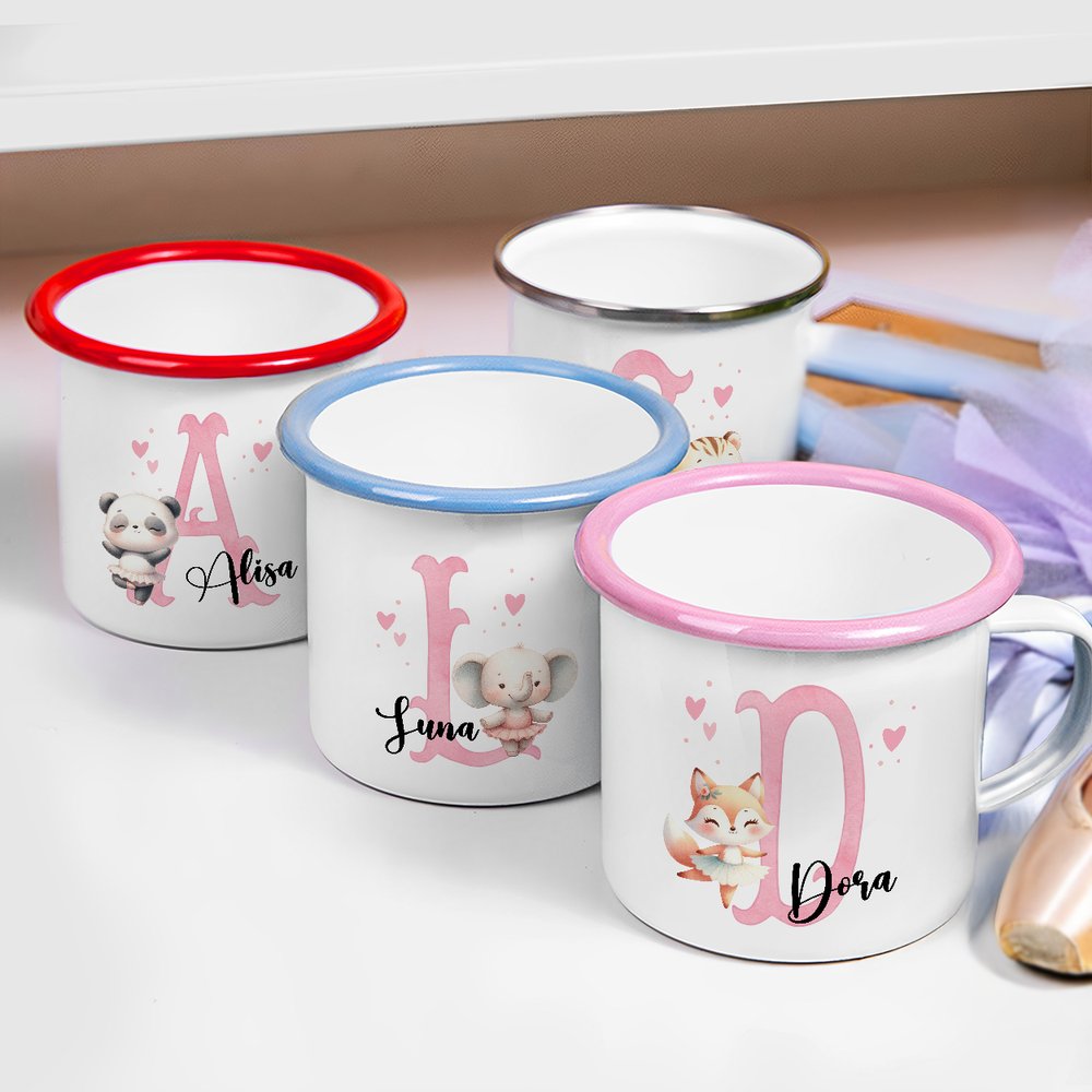 Our enamel mugs feature cute cartoon animal ballerinas with elegant initials and playful hearts as decorations. We offer up to 20 animal patterns in different styles, so you can find the one your child likes. You can personalize your name to make this gift a unique souvenir.
