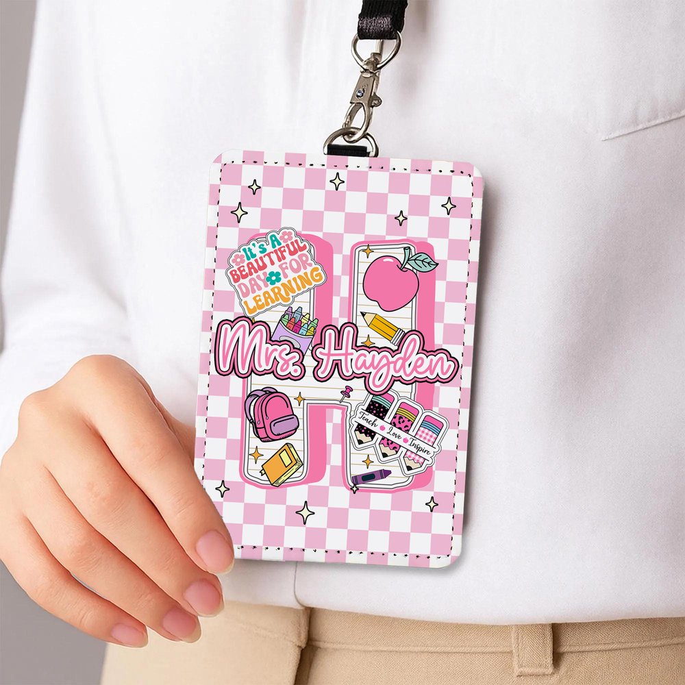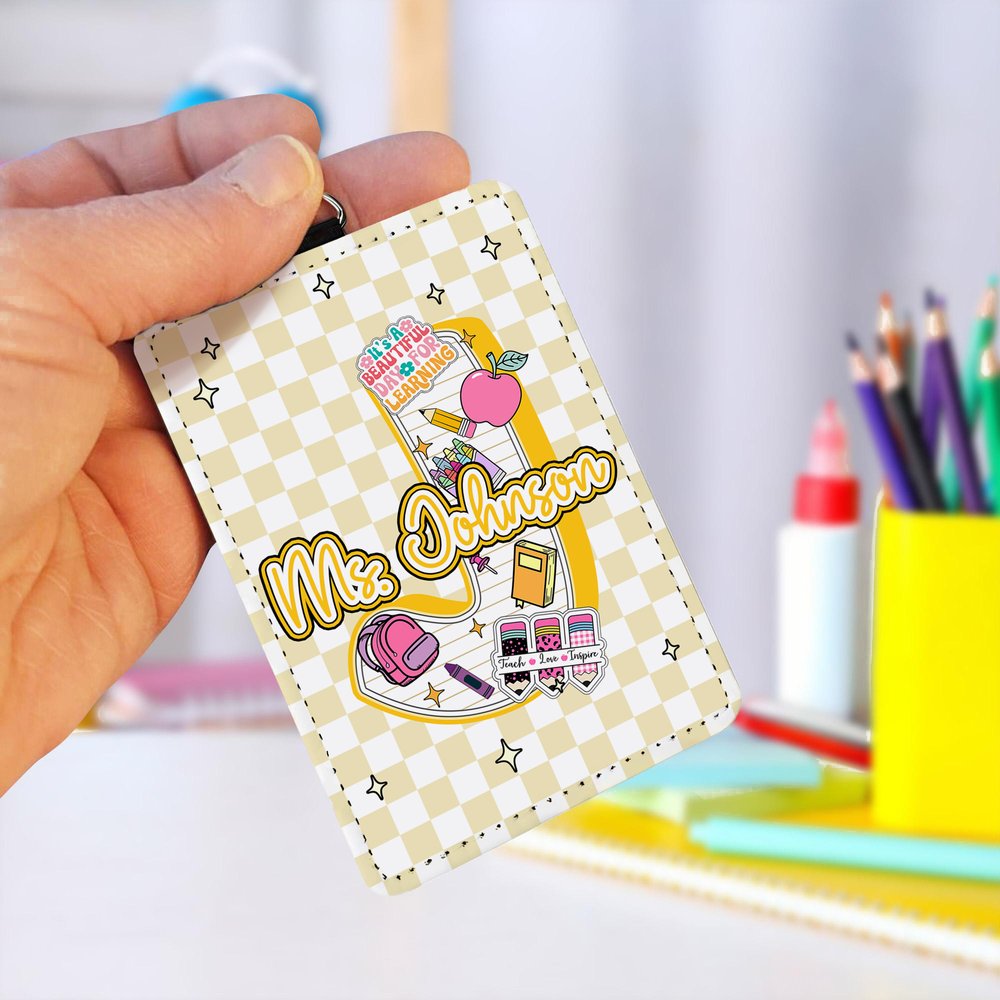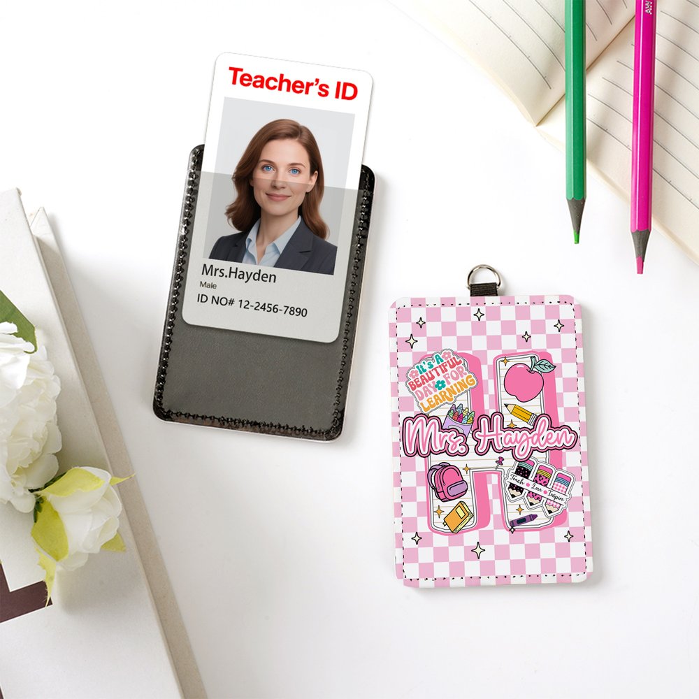 This badge holder is uniquely designed with personalization options and can be customized with a name and initials. Its stylish appearance is paired with cute school supplies-themed graphics, such as apples and pencils, which are full of fun and personality, allowing teachers to show their identity while showing their unique style.