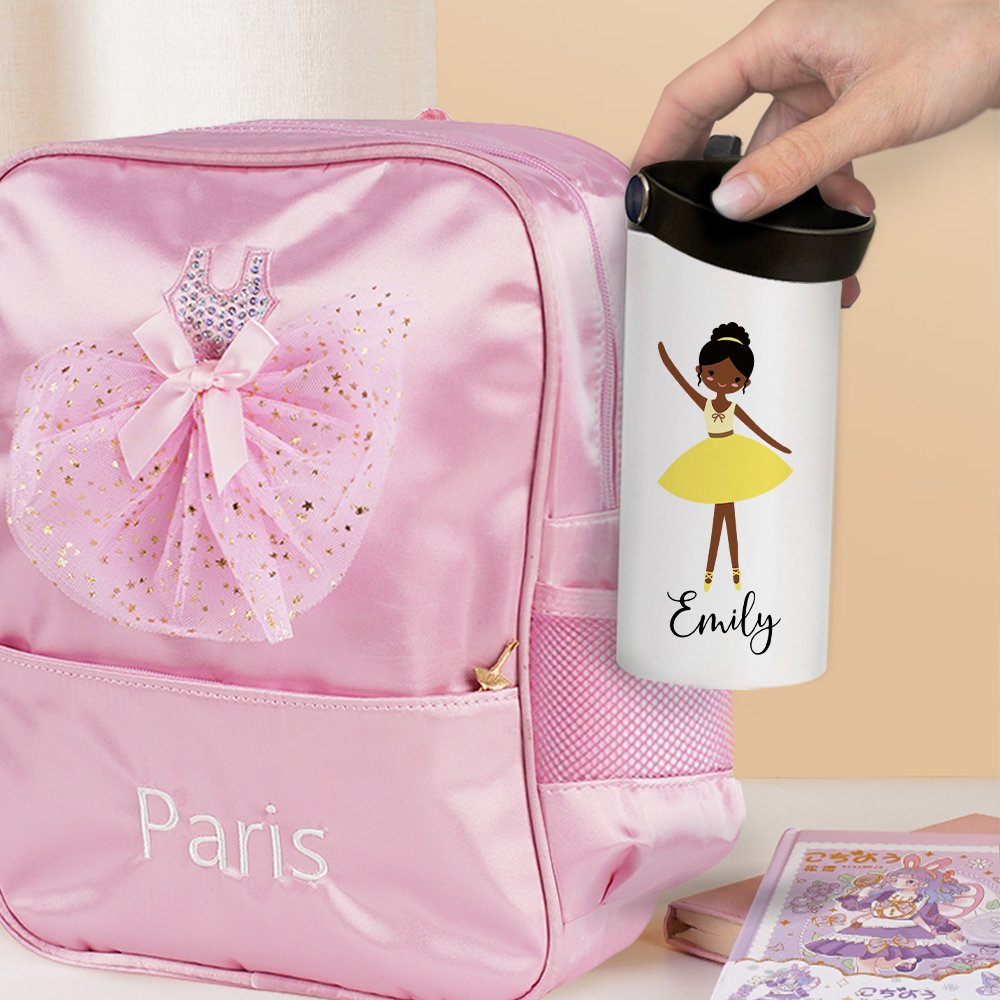 This is a practical and fun water tumbler. The front of the water tumbler is designed with a ballet girl. The bright ballet skirt matches the girl's different dancing postures, showing the girl's elegance and confidence. You can personalize your name on it to create a unique life accessory.