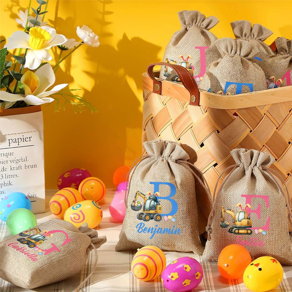 This candy bag features an excavator as its core design element, incorporating cute bunny ears and Easter eggs, perfectly blending childlike charm with the festive atmosphere. It supports customization with the kid's initial and name on the front of the bag, making each bag a unique holiday symbol for the child. Suitable for both boys and girls, there's a style to suit everyone's taste.