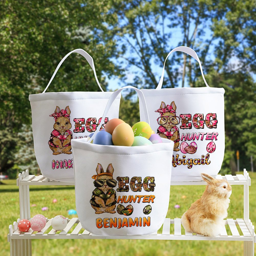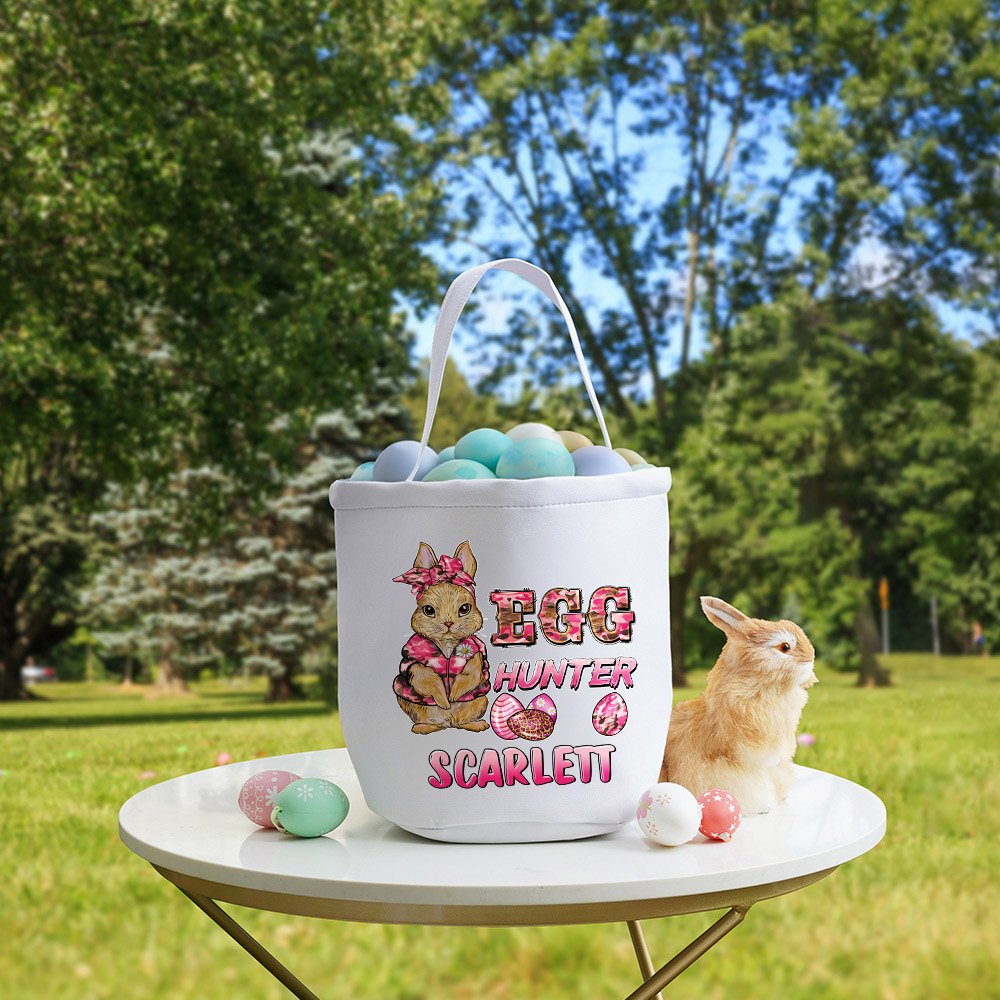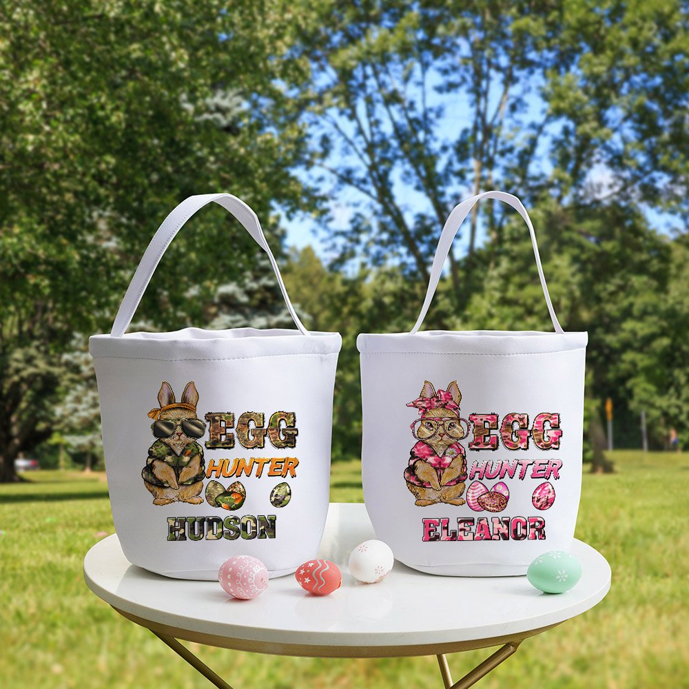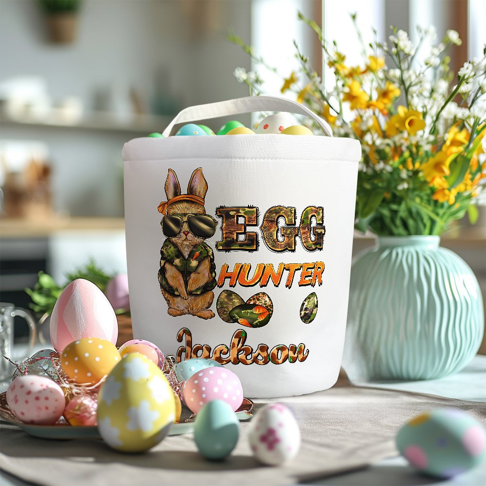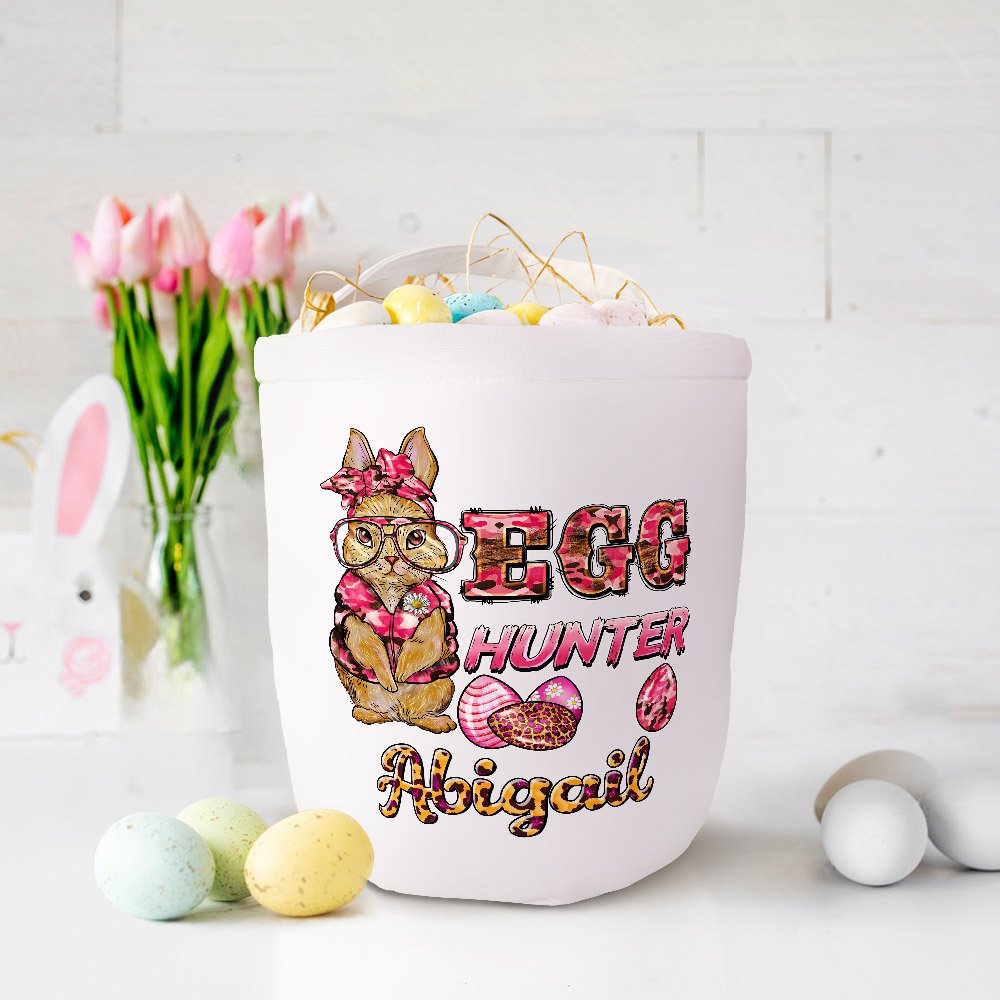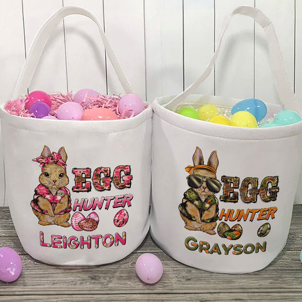 This basket is colorful and full of childishness. It is printed with an adorable boy or girl rabbit and "EGG HUNTER", you can customize it with four patterns and fonts, making it full of a festive atmosphere. What's more special is that the basket can be customized with a name, making it a unique gift that allows children to stand out at parties and egg hunts.