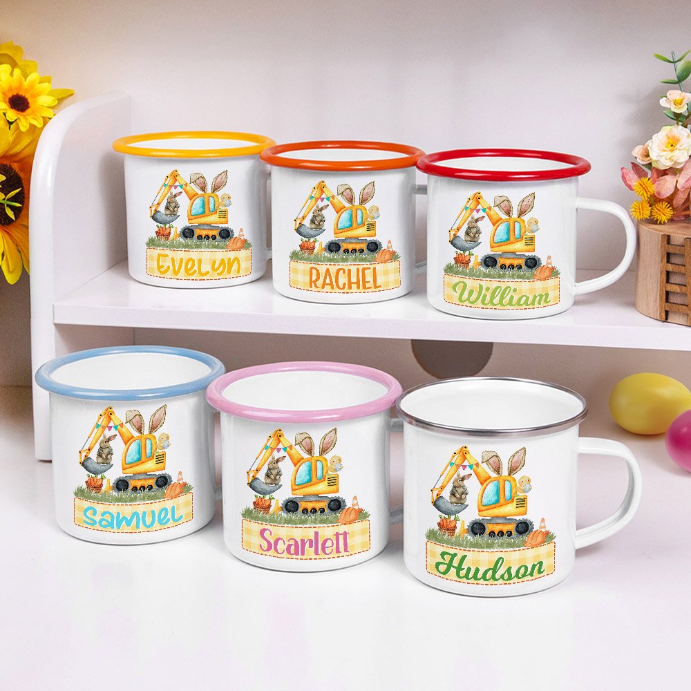 The mug is printed with colorful cartoon excavator and rabbit patterns. This combination of mechanical and Easter elements not only attracts the attention of children but also reflects the happy atmosphere of Easter. Each mug can be customized with the child's name, adding to the gift's exclusive feeling and commemorative value.