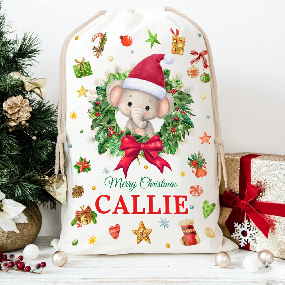 This gift bag features customizable cute cartoon animals, a festive Christmas wreath, and your name. It blends whimsical animal designs, classic wreath elements, and personalization, making each bag a one-of-a-kind Christmas delight.