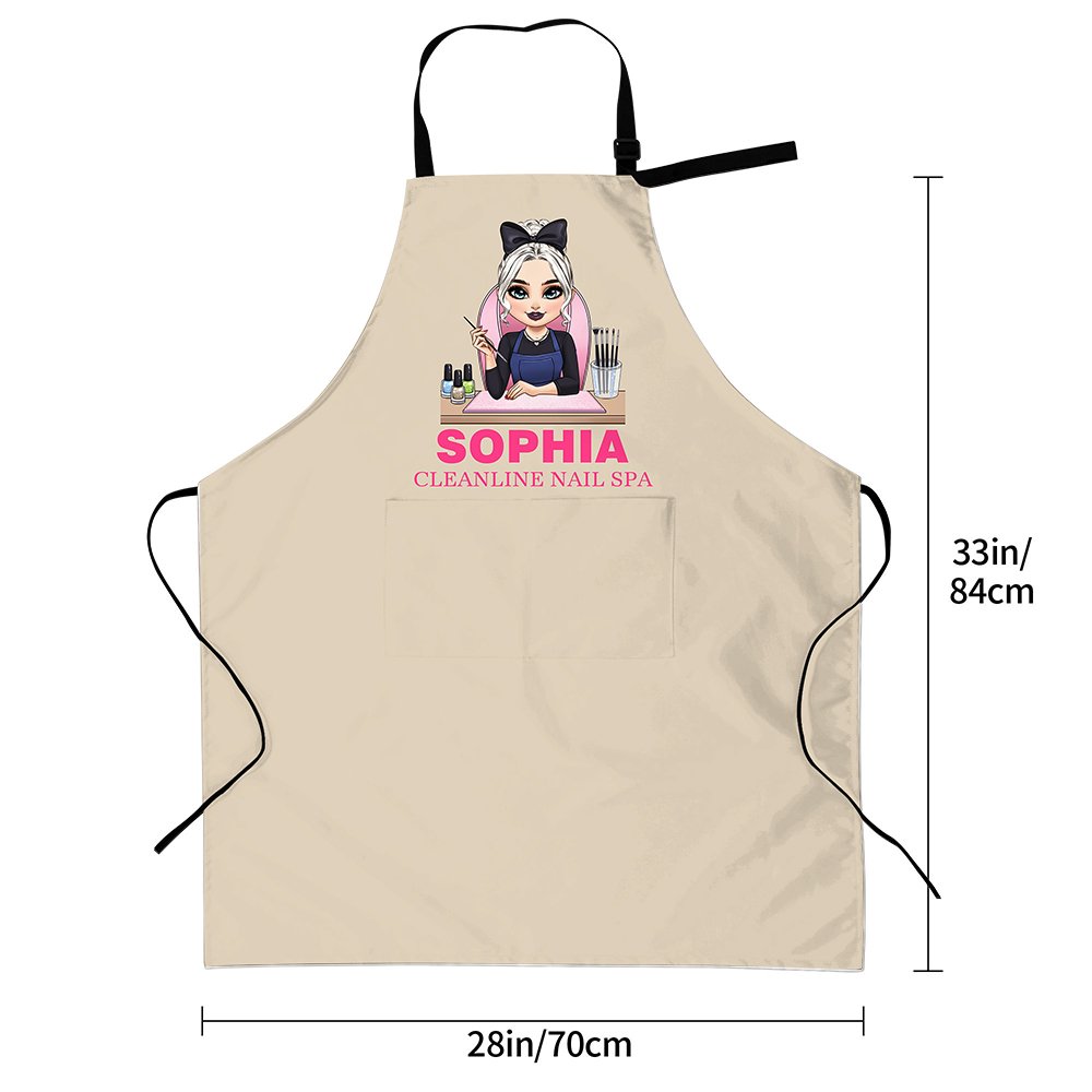 This apron perfectly combines an adorable cartoon girl based on your image with salon-themed elements like nail polish bottles and brushes, creating a stylish yet sophisticated atmosphere. We provide 23 different apron colors and multiple font colors, so you can choose them based on your preference. You can also customize your name and salon name, reflecting your unique personality.