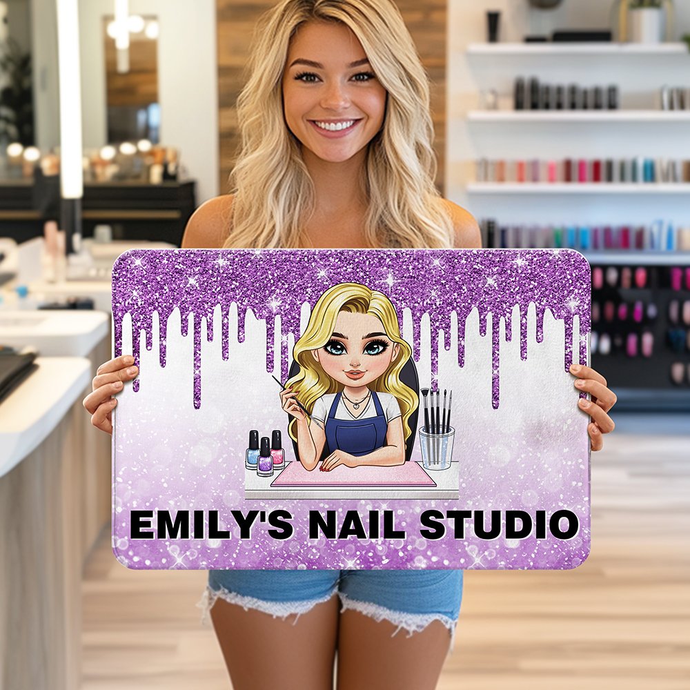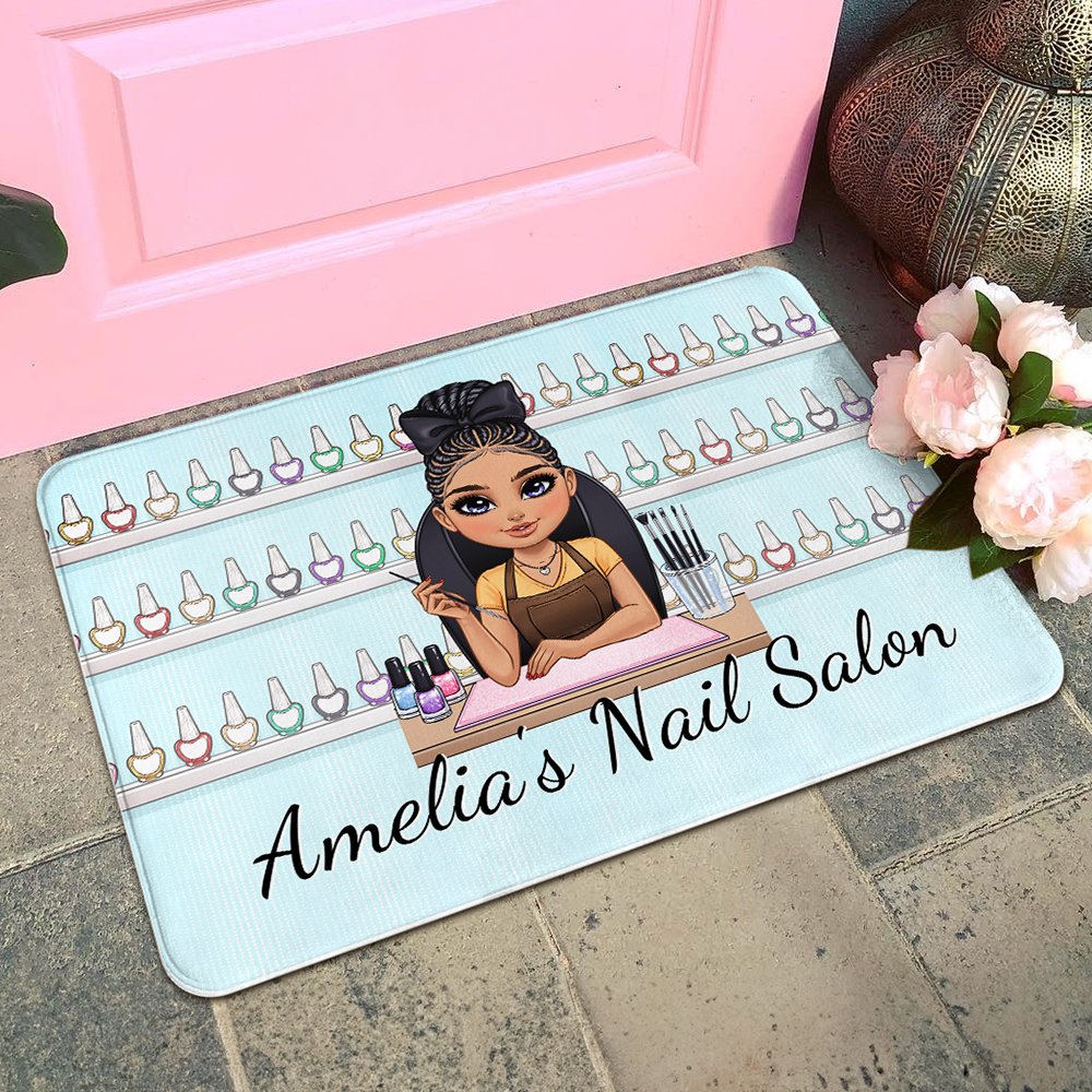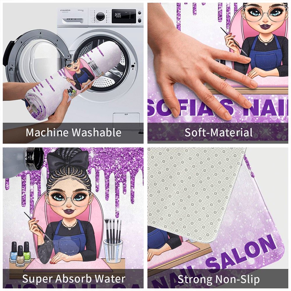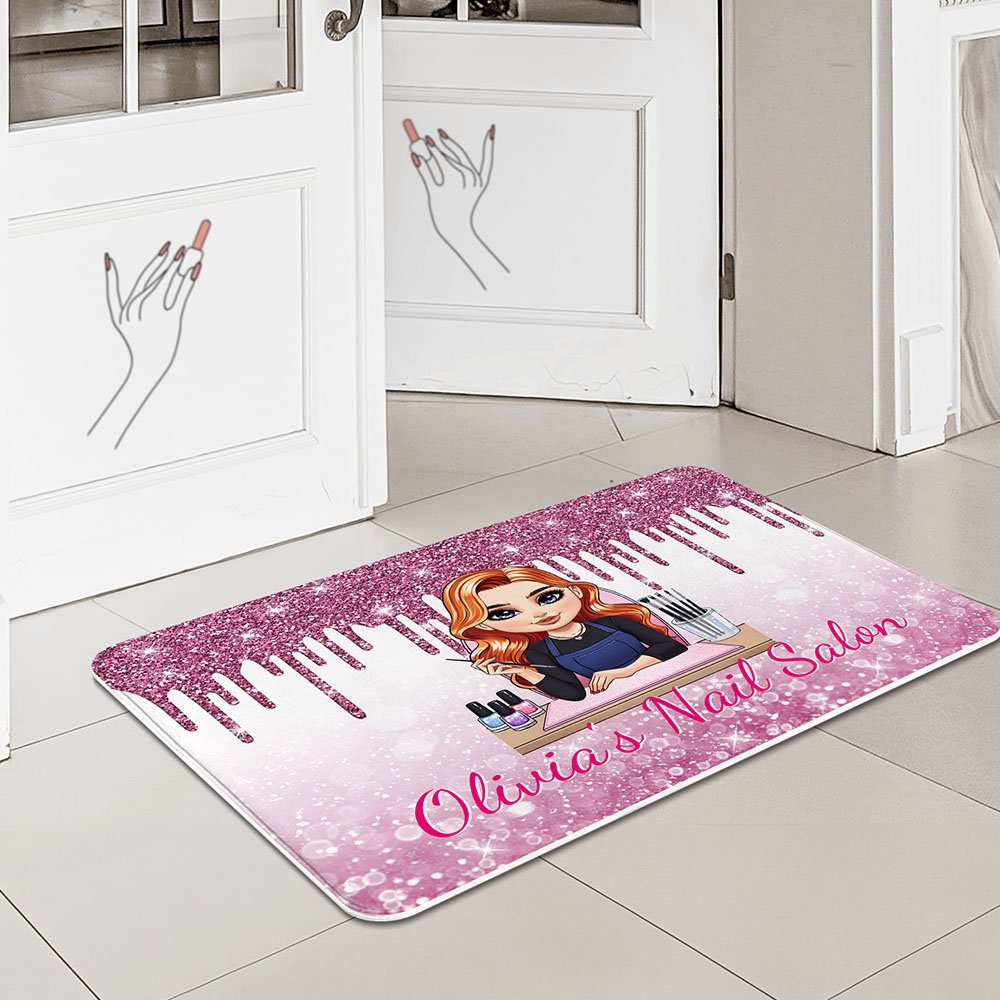 With a unique custom design as the highlight, this floor mat vividly depicts the image of a dedicated manicurist. It can be customized according to your name and image to create a unique style. Whether it is hairstyle, clothing, or color matching, it can reflect your unique understanding of beauty and highlight your professional and personal charm.