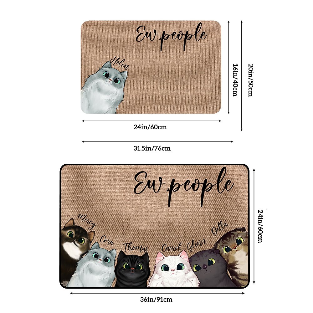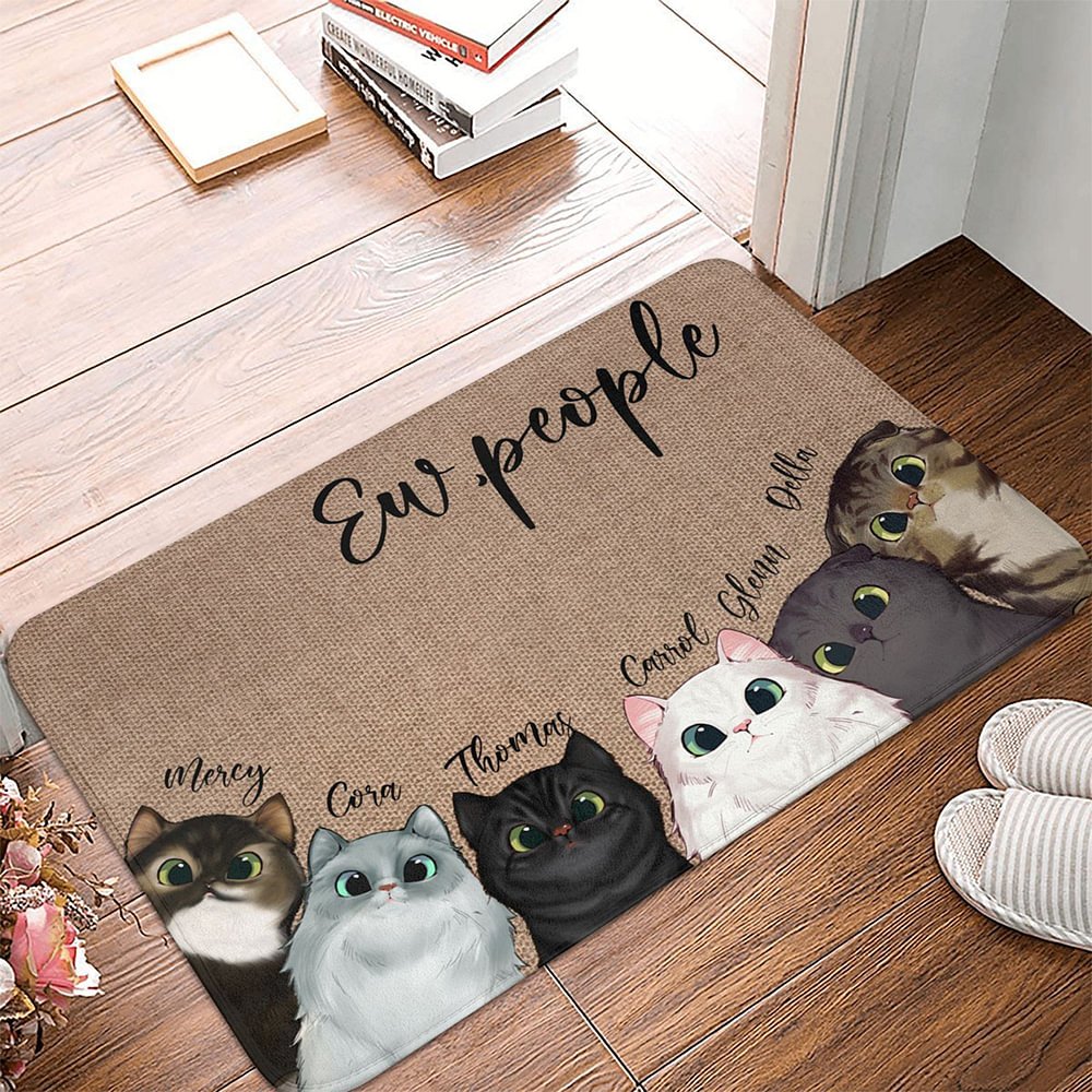 Personalized Cute Cat Doormat Ew People Quote Mat Cat Avatar Decoration with Name Birthday Housewarming Gift for Family Cat Lover