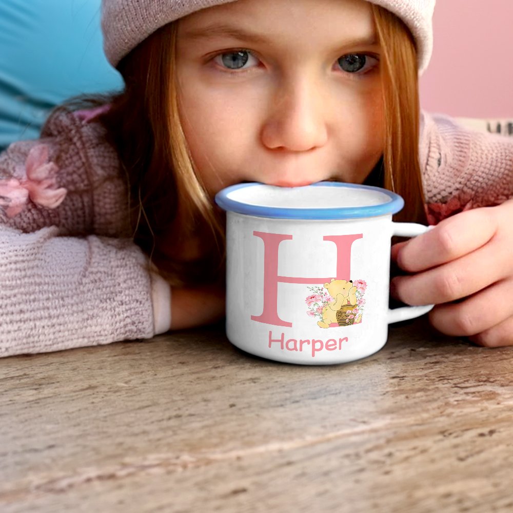 Featuring the charming classic Winnie the Pooh, created by the famous author A.A. Milne, this enamel mug has captured the hearts of generations. It stands out with its exquisite design and personalized elements. You can customize your name and initials and choose your favorite color to make each mug a unique masterpiece.