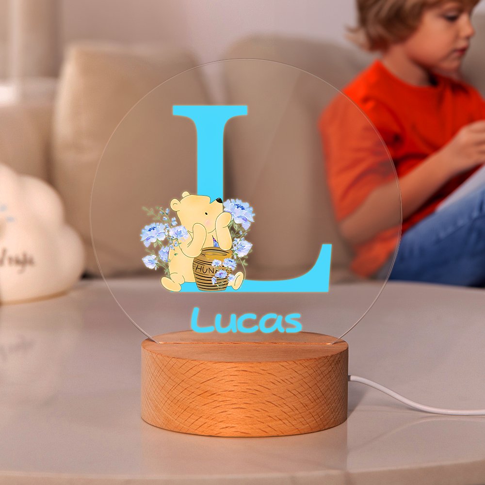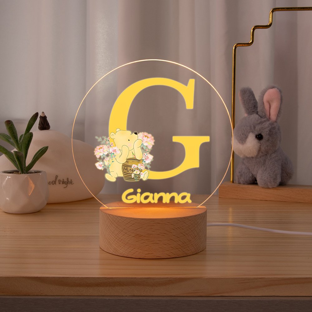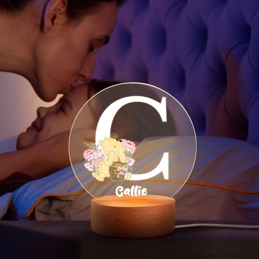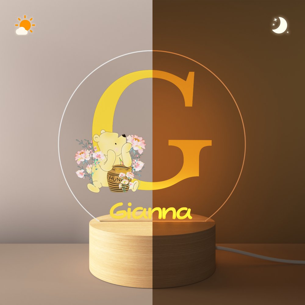 This night light ingeniously combines the patterns of Winnie the Pooh and flowers, featuring six color options for the initials, full of childlike charm and unique personality. Additionally, you can customize your child's name, offering them a unique and special companionship.
