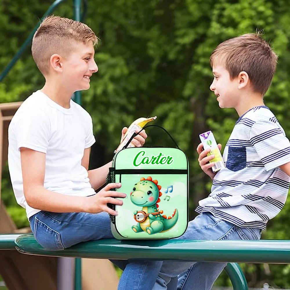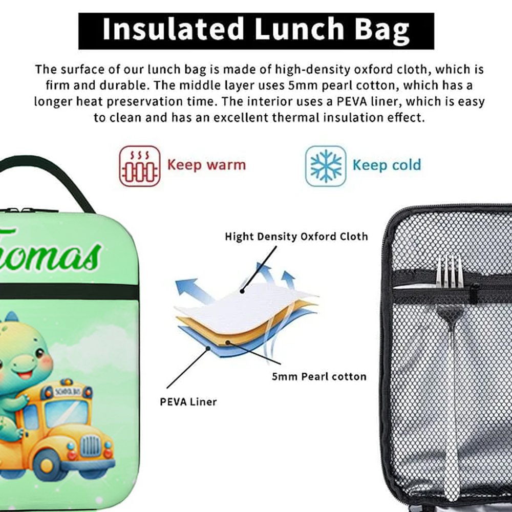 This lunch bag features vibrant and playful designs of fantasy unicorns and dinosaurs that children adore. Each image is lifelike, colorful, and full of childlike fun. With a variety of patterns and color options available, it caters to different aesthetic preferences. Additionally, customizable names allow for a personal touch, creating a truly unique lunch bag.
