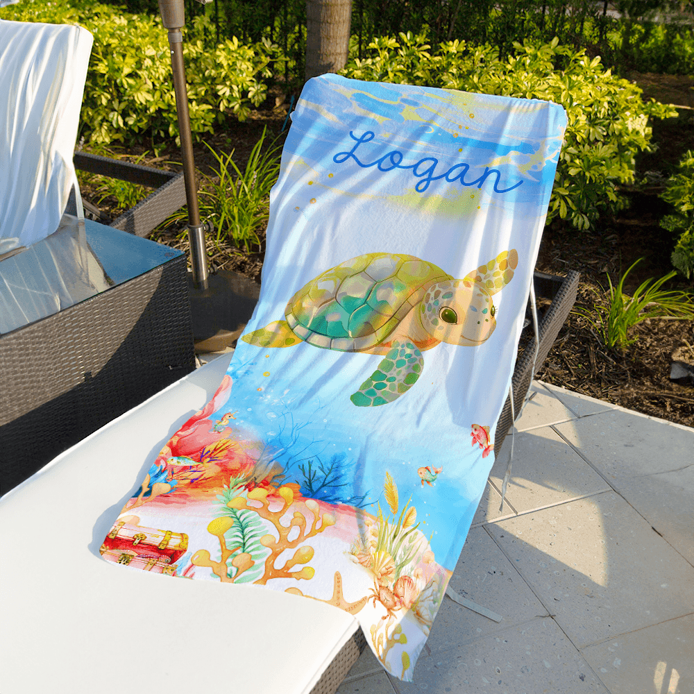 With its bright colors and lively ocean elements, this beach towel brings a big surprise to kids. It features a dreamy marine animal design, bringing children to an underwater world full of magic and wonder. We provide 7 marine animal patterns, allowing you to choose the perfect one to match your child’s preference. You can further personalize it with your child’s name, selecting from 2 font colors and 5 font styles to highlight their unique personality.