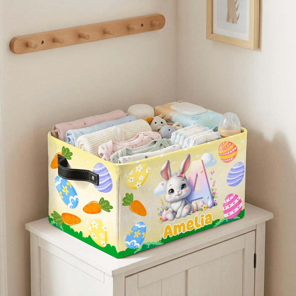 Featuring rich Easter elements such as Easter eggs, bunnies, carrots, and grass, this storage basket boasts bright colors and a playful, childlike design. It also supports customization with your child's name and initials, creating a unique storage solution just for them.