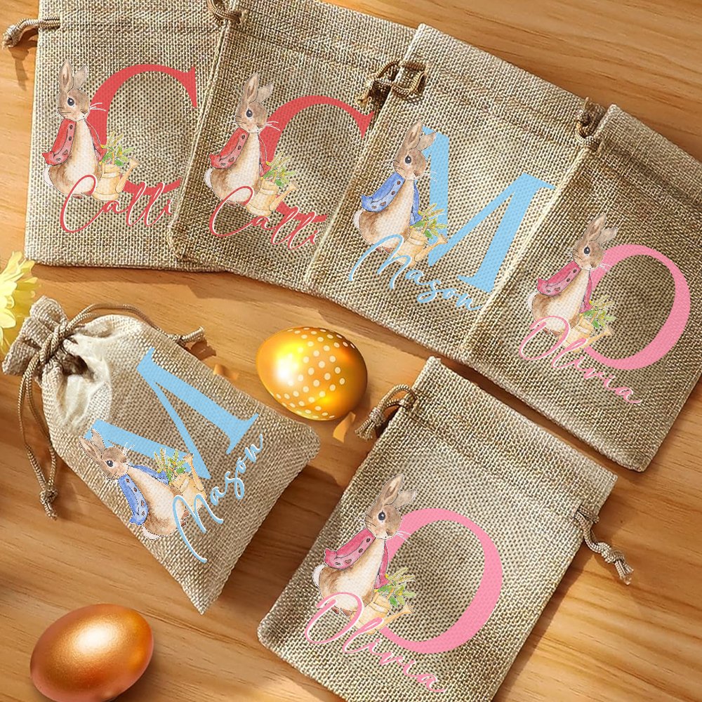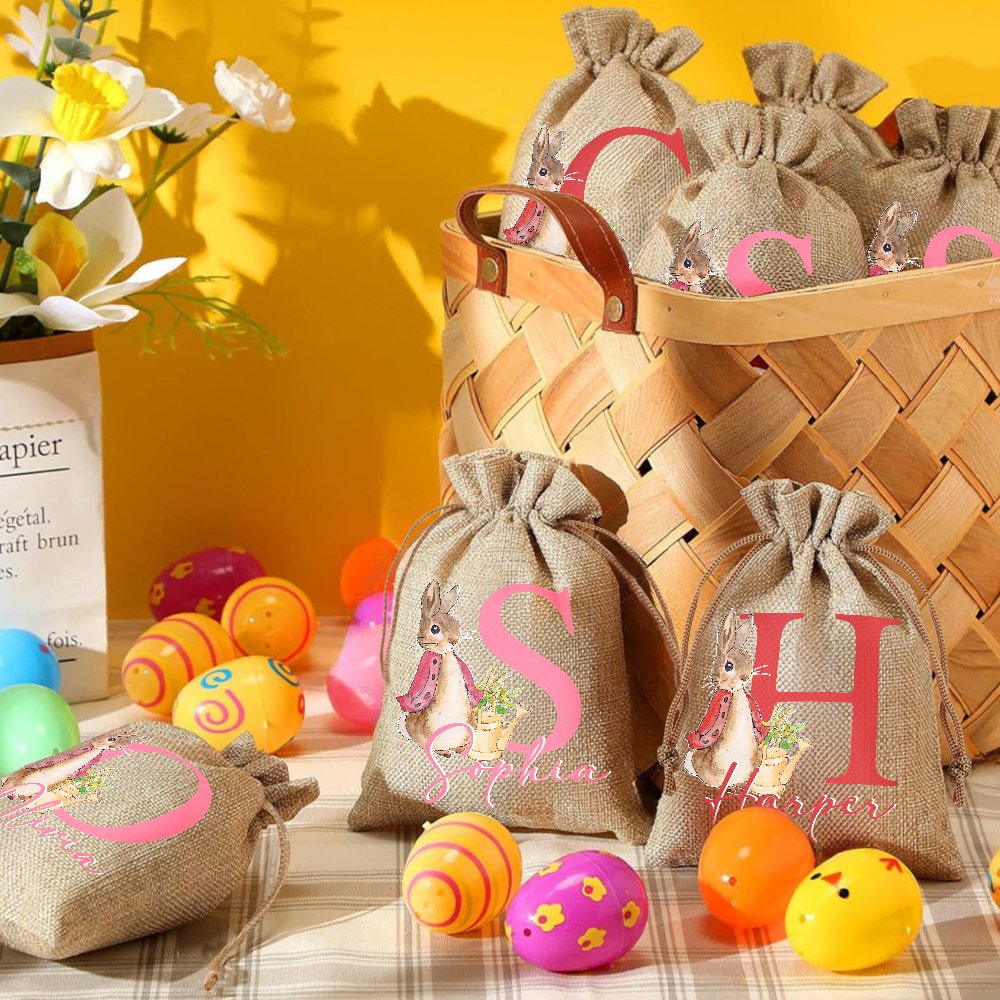 This drawstring bag is made of high-quality jute material and is sturdy and durable. It provides ample space for children to collect Easter treasures and is a practical and convenient accessory that allows children to easily participate in Easter egg hunts.