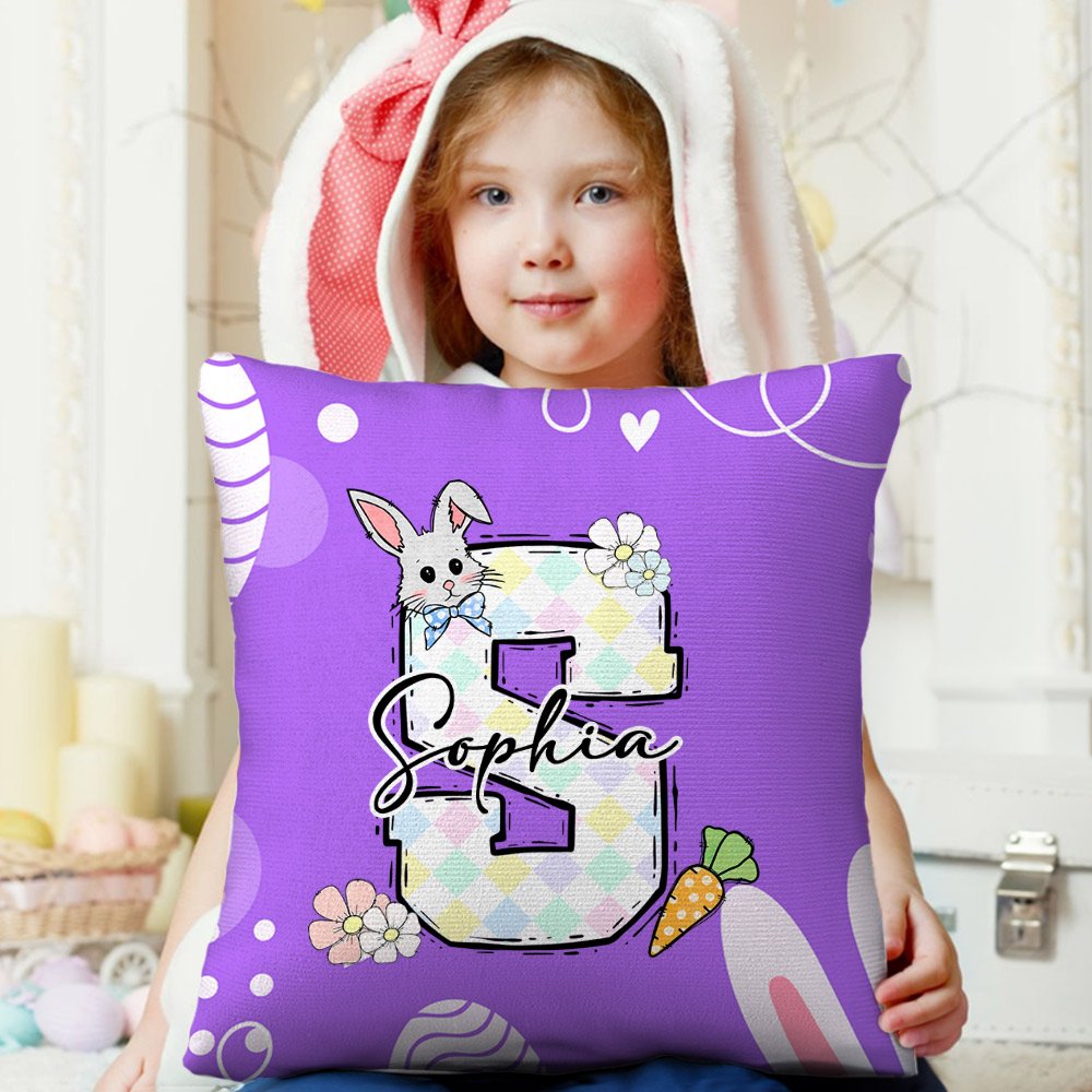 This pillow cover is themed with the Easter Bunny, combined with personalized initial and name elements, making each pillow cover unique. The initials are also decorated with flowers and carrots, adding a bit of childishness and warmth. Five different styles of design make each pillow cover have its unique charm to meet the preferences and needs of different children.al beliefs. The pillow cover can also be customized by name and date according to your needs, making it even more memorable.